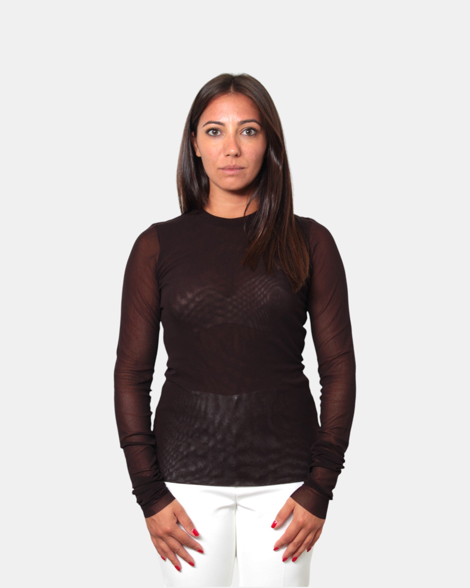 Modell: Langarm mit halbtransparentem Effekt, ideal für die Zusammenstellung moderner und gewagter Outfits. Ein perfektes Stück, das allein oder für einen Hauch von Originalität unter einer Jacke getragen werden kann.
