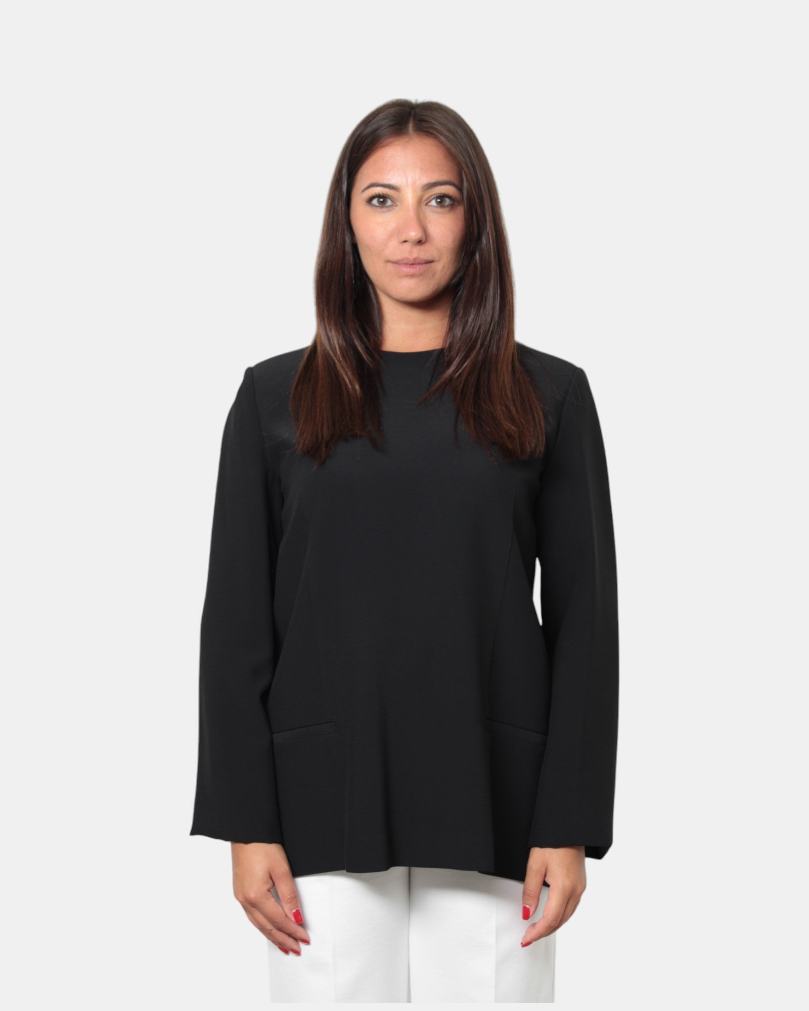 Modell: Elegante Tunika mit anspruchsvollem und zeitlosem Design. Die Silhouette ist so gestaltet, dass sie einen raffinierten und vielseitigen Look bietet, der für verschiedene Anlässe geeignet und leicht mit verschiedenen Stilen kombinierbar ist.
