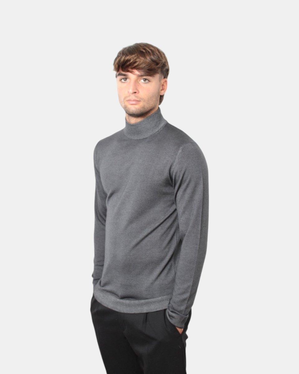 Der Rollkragenpullover von Daniele Fiesoli besteht zu 100 % aus Merinowolle und erhält durch die Säurebehandlung ein ganz besonderes, grobkörniges Aussehen.