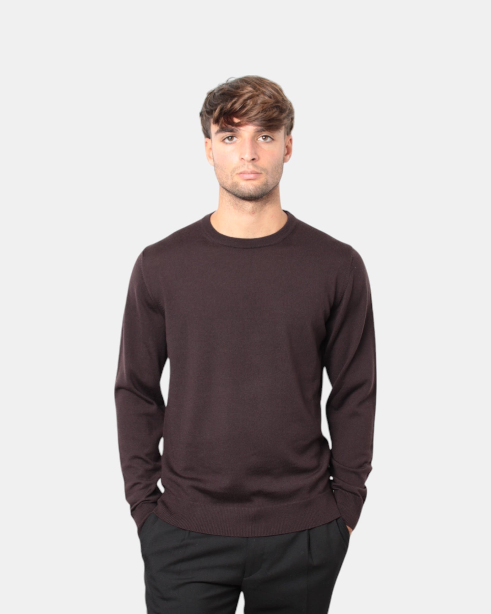 Der Rundhalspullover von Daniele Fiesoli besteht aus 100 % Merinowolle und kann dank seiner Maschendichte von 14 auch unter Blazern getragen werden.