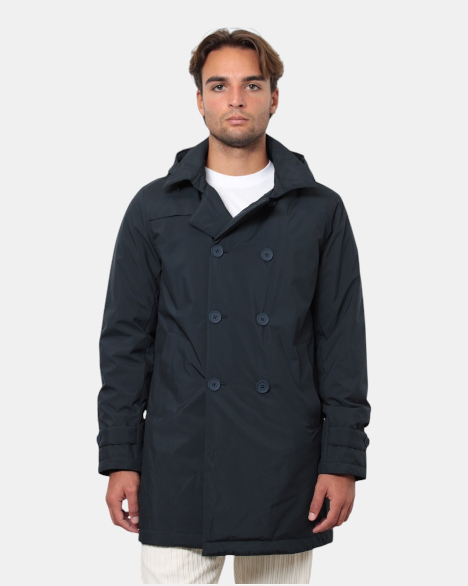 Detail: Mit verstellbarer Kapuze, die an windigen oder regnerischen Tagen zusätzlichen Schutz bietet. Der zweireihige Verschluss verleiht eine elegante und unverwechselbare Note.