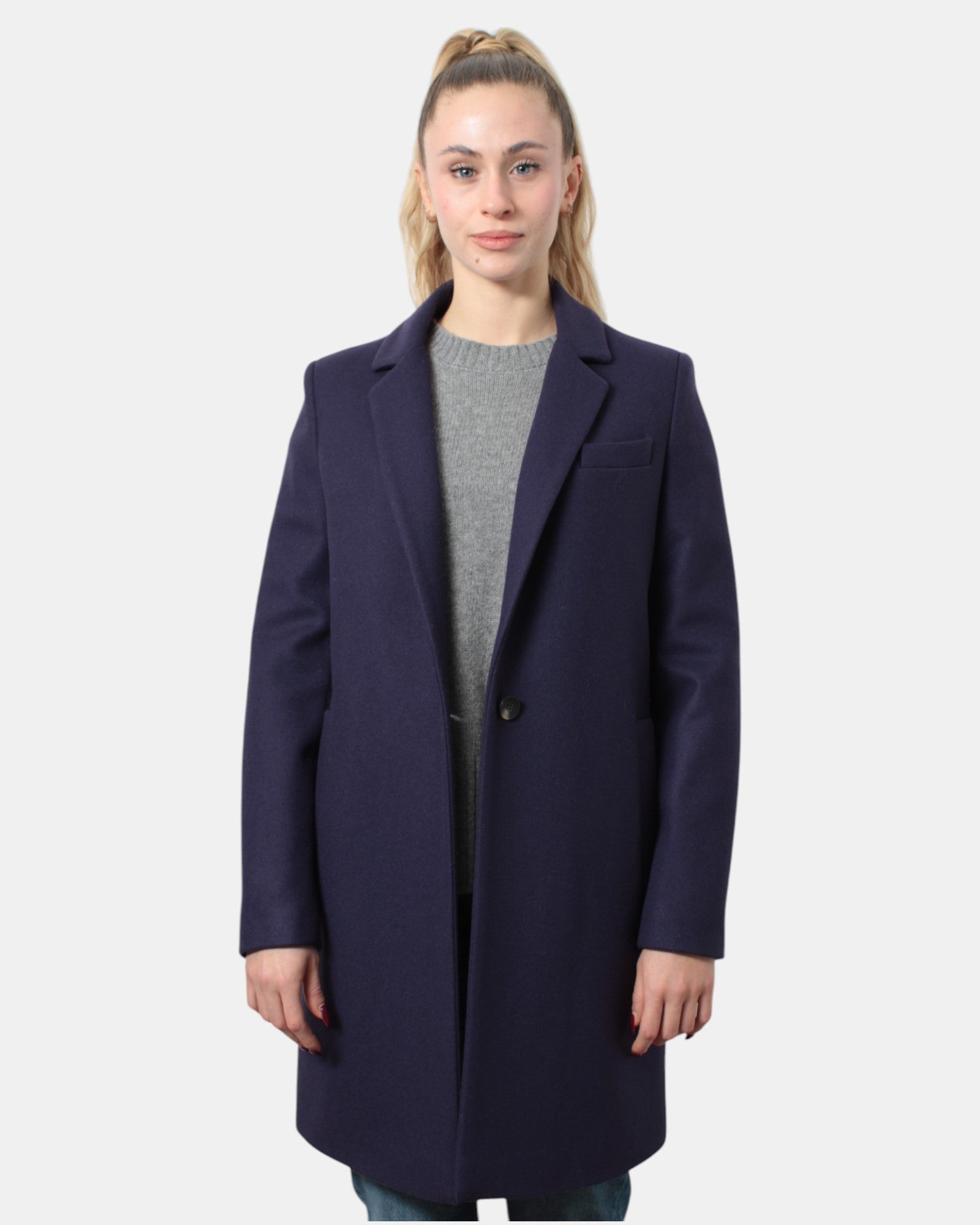 Der Mantel „ANNIEPARIS“ hat ein einreihiges Design, einen Knopf, zwei seitliche Leistentaschen und eine Brusttasche, eine schmale Passform und zeichnet sich durch einen fülligen und warmen Stoff aufgrund seiner Zusammensetzung aus 100 % Schurwolle aus. Eine chemische Reinigung wird empfohlen. Das Model ist 1,70 m groß und trägt Größe 40
