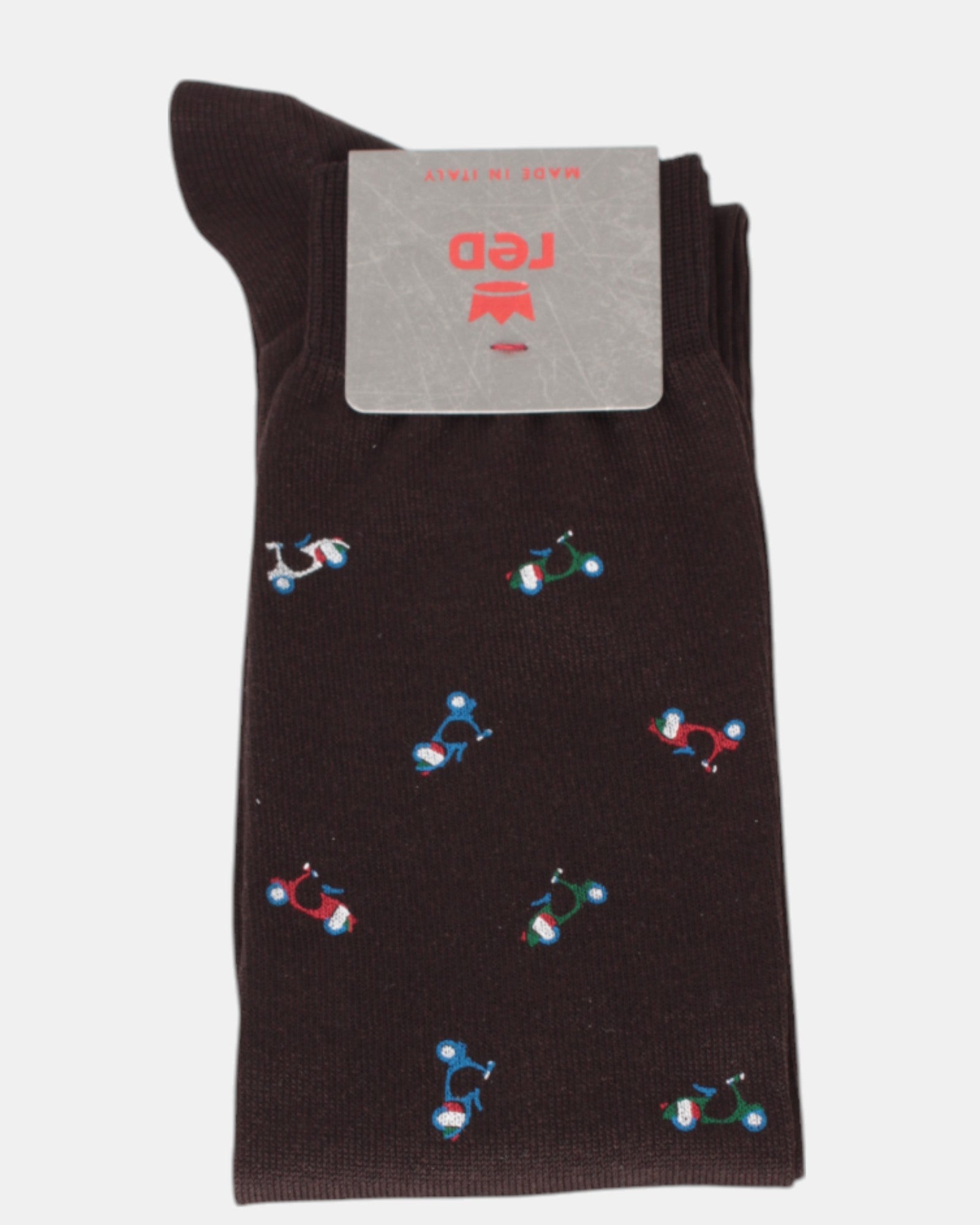 Die Longsocke von Red mit glattem, unifarbenem Wespenmuster besteht aus 80% Baumwolle, 18% Polyamid und 2% Elasthan.