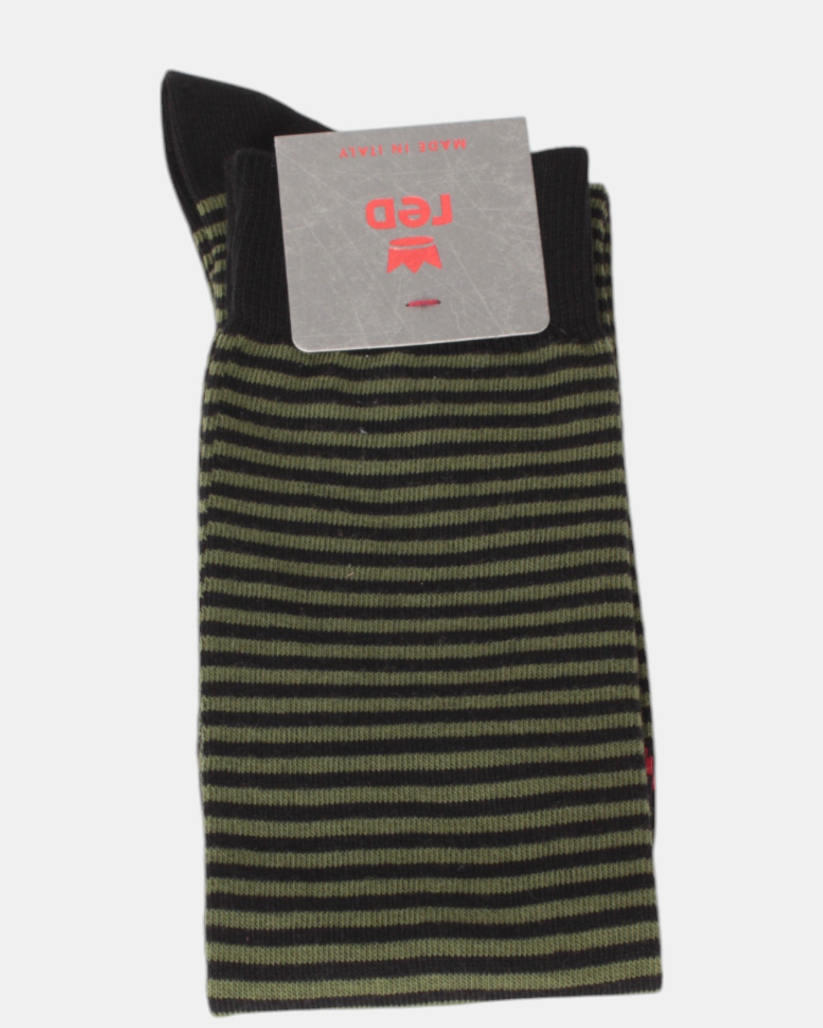 Die Longsocke von Red mit Streifenmuster, einfarbig, mit kontrastierender Unterseite besteht aus 78% Baumwolle, 20% Polyamid und 2% Elasthan.