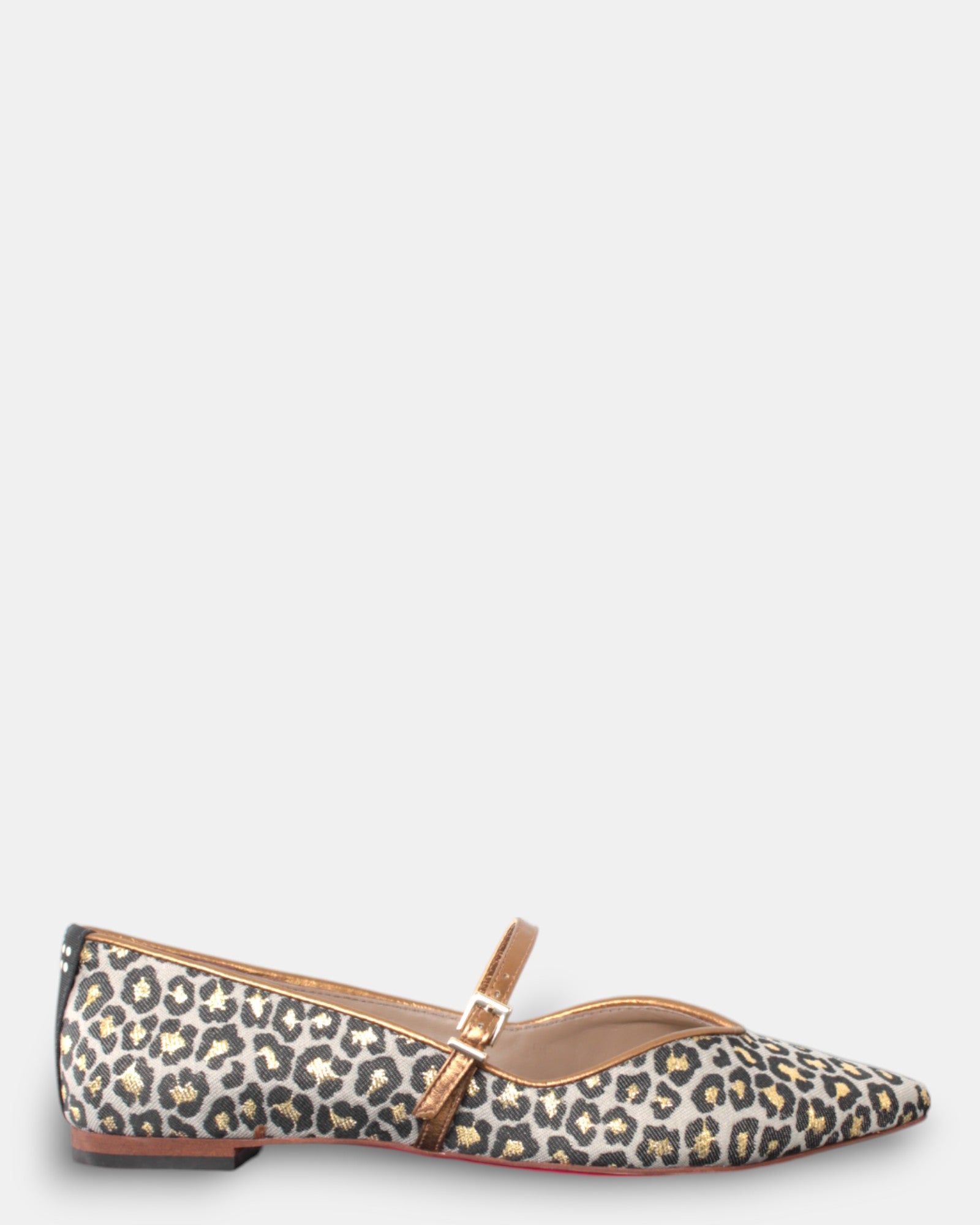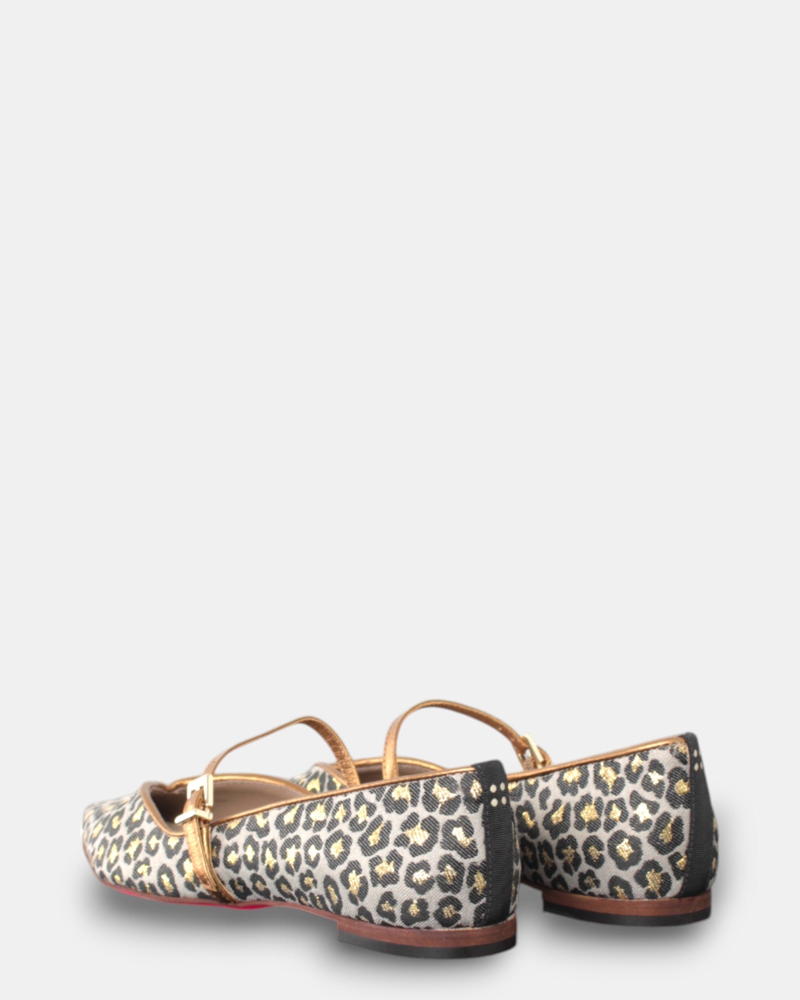 Il mocassino di Dotz presenta chiusura con fibbietta in ottone sul collo del piede, tomaia in tela con fantasia leopardata, tacchetto e suola in cuoio. Calzata regolare