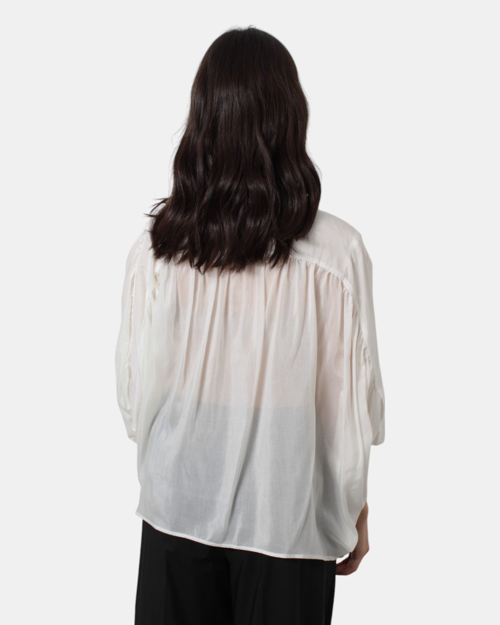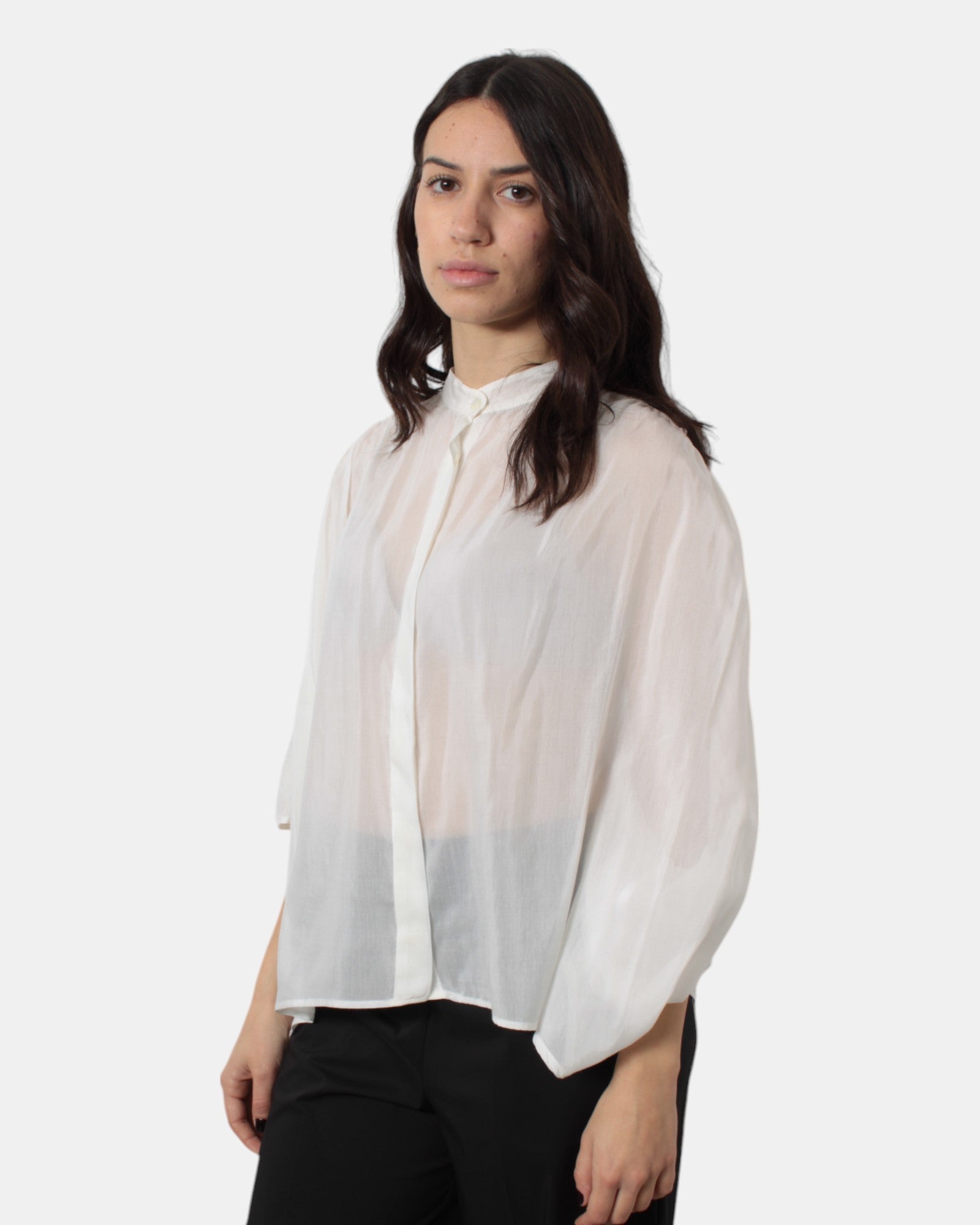 La casacca di Solotre presenta chiusura a otto bottoni nascosti, vestibilità ampia, dalla mano fresca dovuta alla sua composizione in 70% cotone e 30% seta. SI consiglia lavaggio a mano. La moddella è alta 1,68 m e indossa una 40
