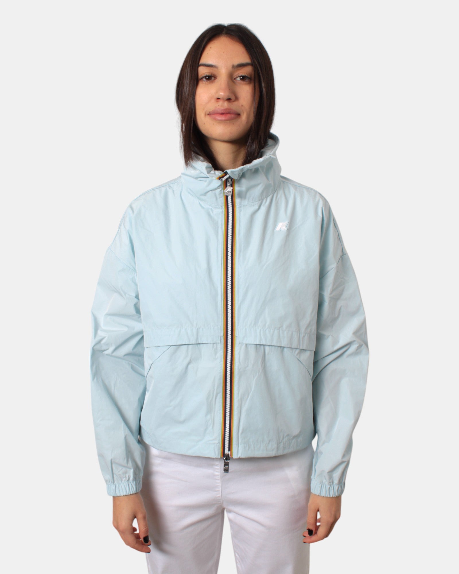 La giacca a vento di K-Way presenta logo brand sul petto, tasche frontali, chiusura con zip e dettaglio colori brand, giro sceso, dalla mano fresca dovuta alla sua composizione in 100% poliestere. Si consiglia lavaggio a mano. La modella è alta 1,68 m e inossa una XS