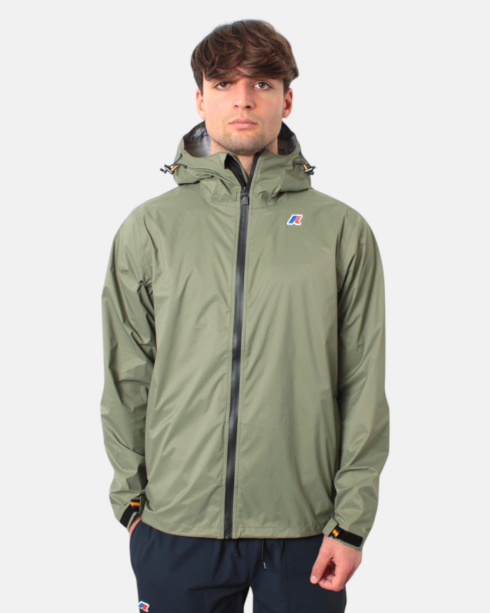 Il giubbotto di K-way presenta chiusura con zip termosaldata, e logo brand sul petto, tasche frontali, dalla mano freschissima e leggera dovuta alla sua composizione in 48% poliammide, 34% poliuretano termoplastico e 18% poliestere. Si consiglia il lavaggio del capo a massimo 30 gradi. Il modello è alto 1,78 m e indossa una M