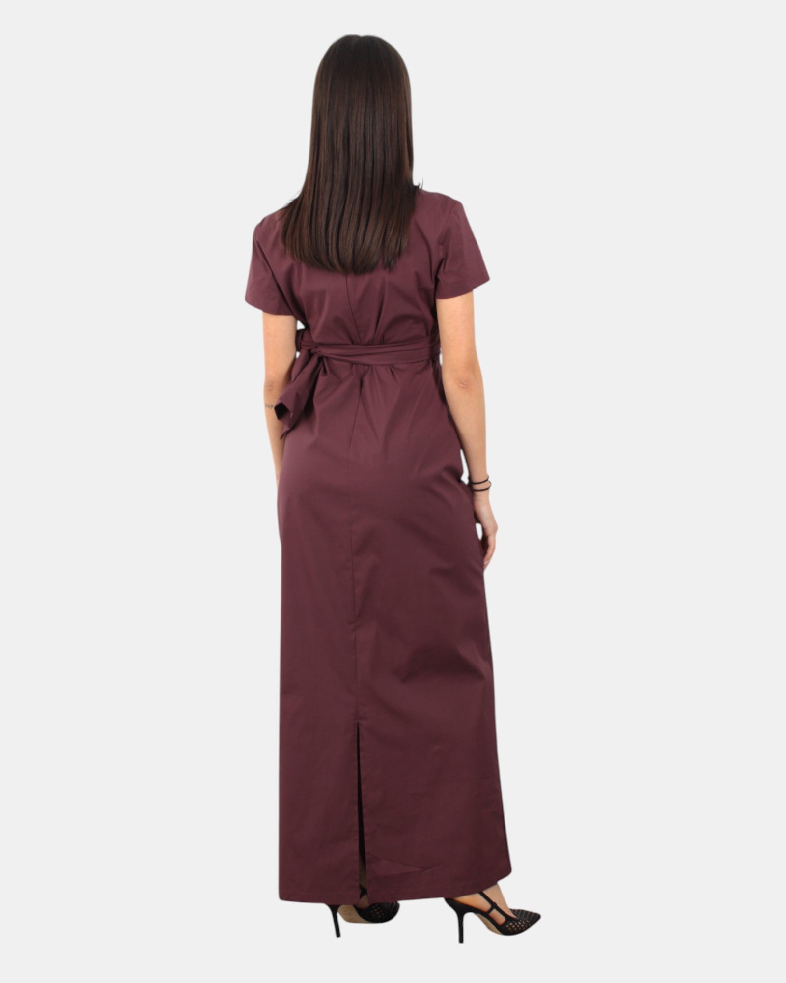 L'abito di Liviana Conti presenta maniche corte, fascione centrale, chisura con zip sul retro, dalla mano fresca dovuta alla sua composizione in 64% cotone 31% poliammide e 5% elastan. Si consiglia lavaggio a massimo 30 gradi. La modella è alta 1,68 m e indossa una 40