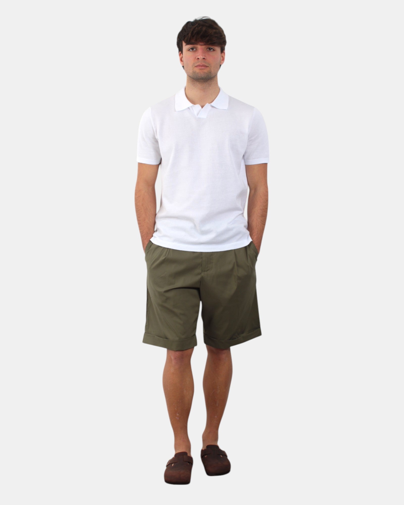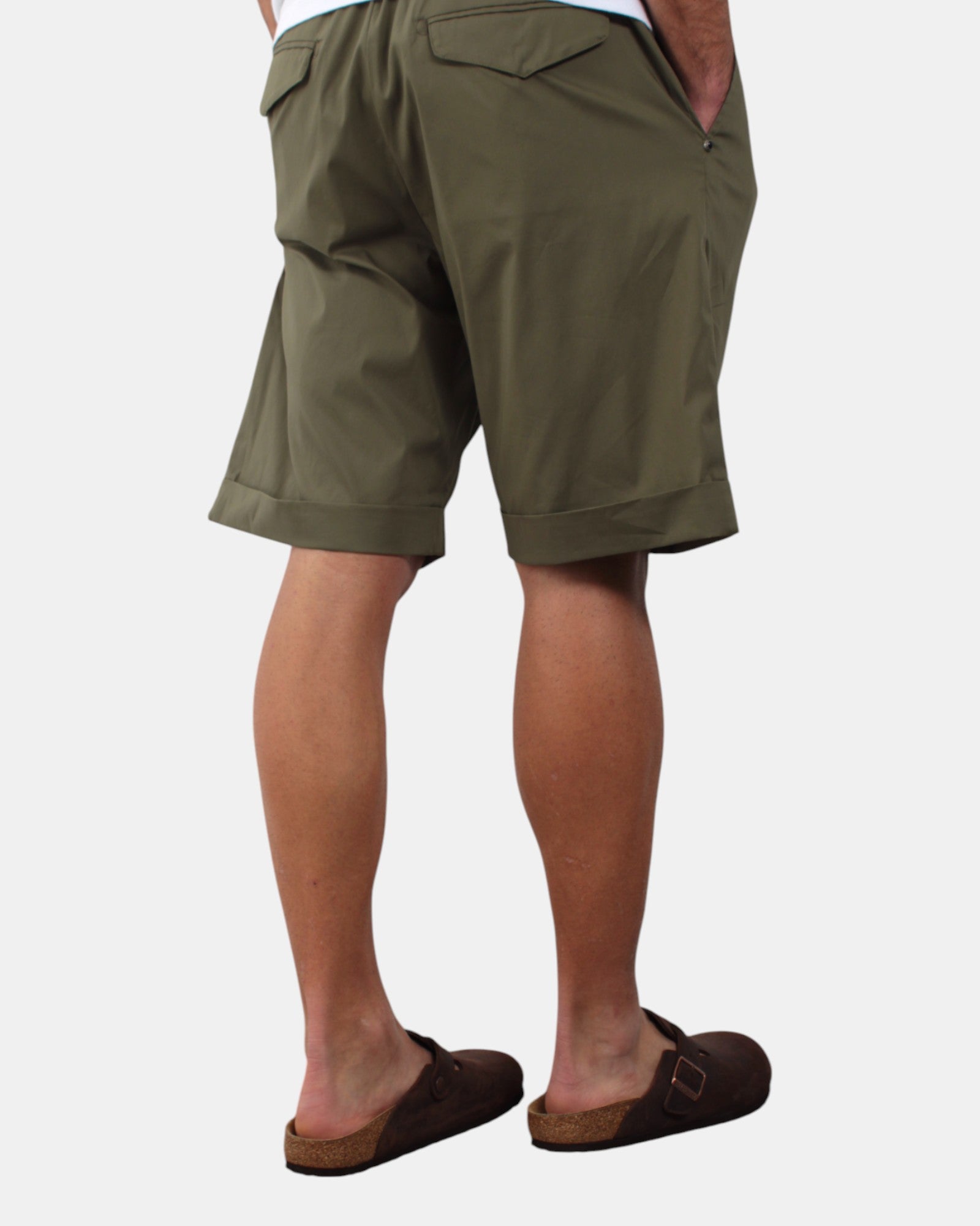 Il bermuda cargo di White Sand presenta elastico in vita con cinturino con dettaglio brand, sul retro due tasche con bottone, vestibilità regolare e comoda, dalla mano fresca dovuta alla sua composizione in 71% cotone, 25% poliammide e 4% elastan. Si consiglia lavaggio a massimo 30 gradi. Il modello è alto 1,78 m e indossa una 48