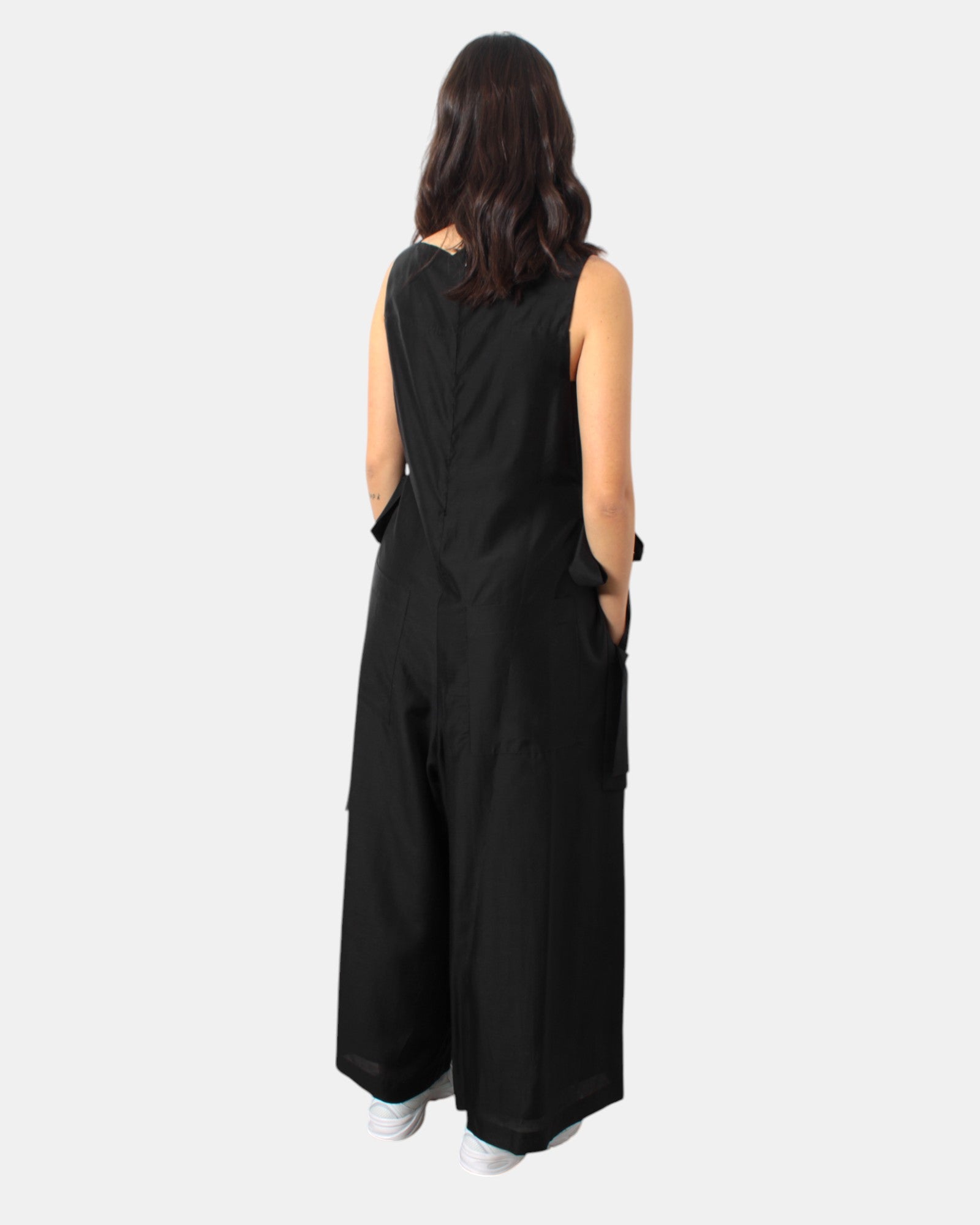 La tuta di Meimeij presenta fantasia monocolore, vestibilità regolare, fiocchetti su ambo i lati, dalla mano fresca dovuta alla sua composizione in 85% lyocell e 15% poliestere, si consiglia lavaggio a massimo 30 gradi. La modella è alta 1,68 m e indossa una 40