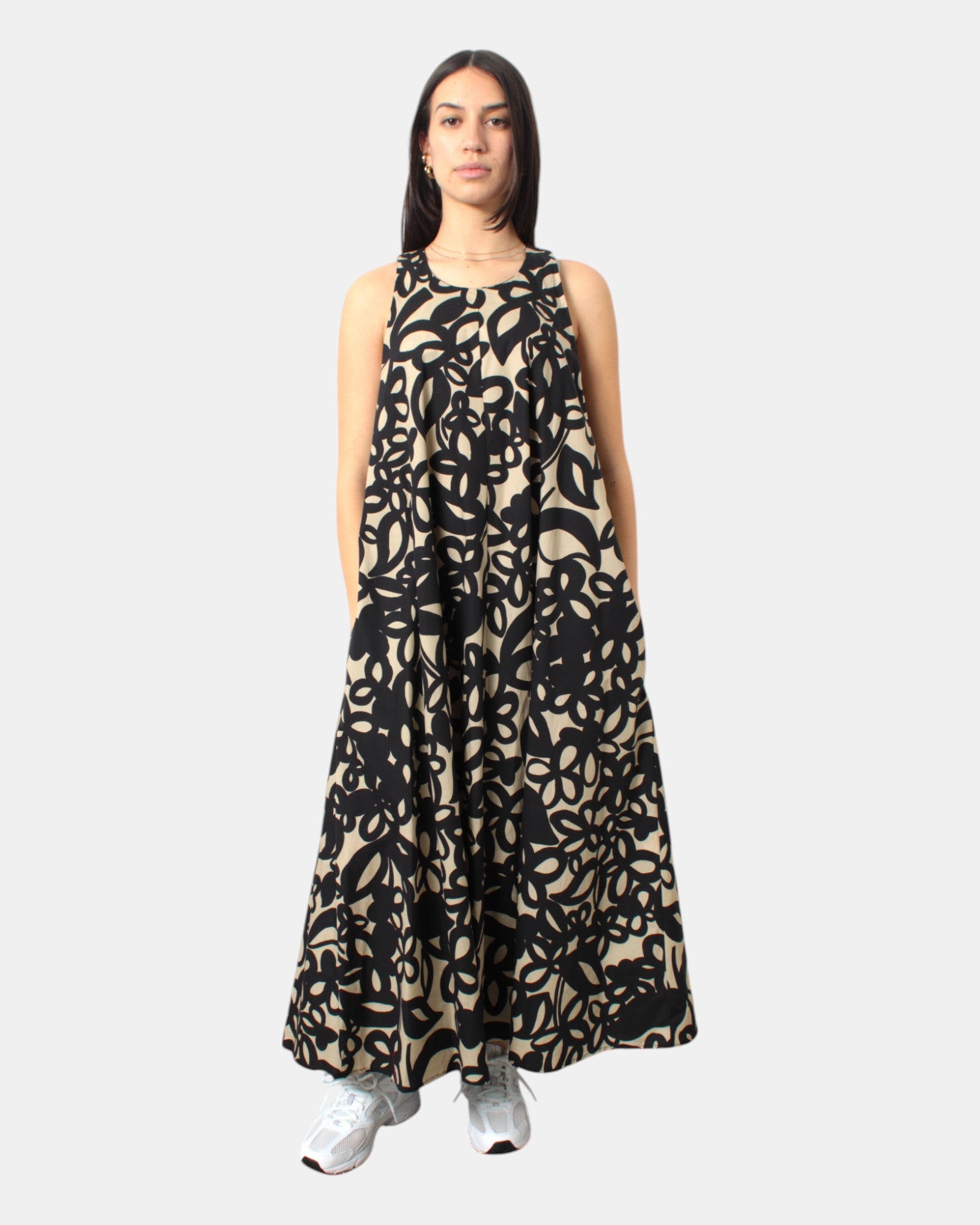 Il vestito di Meimeij presenta fantasia floreale brand in contrasto di colore, vestibilità ampia, dalla mano fresca dovuta alla sua composizione in 100% cotone. Si consiglia lavaggio a mano. La modella è alta 1,68 m e indossa una 42