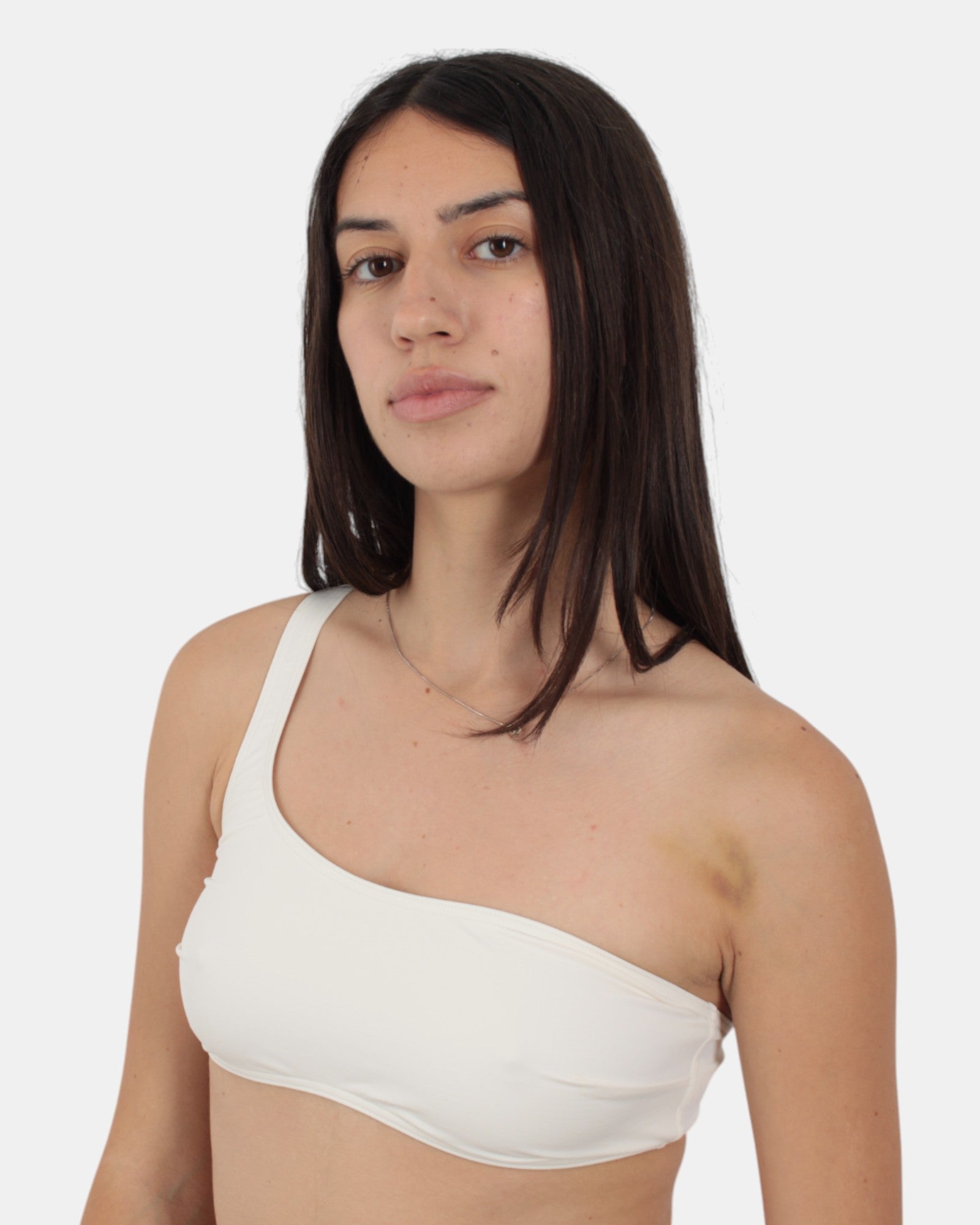 ONE SHOULDER BANDEAU BIKINI TOP - 10 CREAM