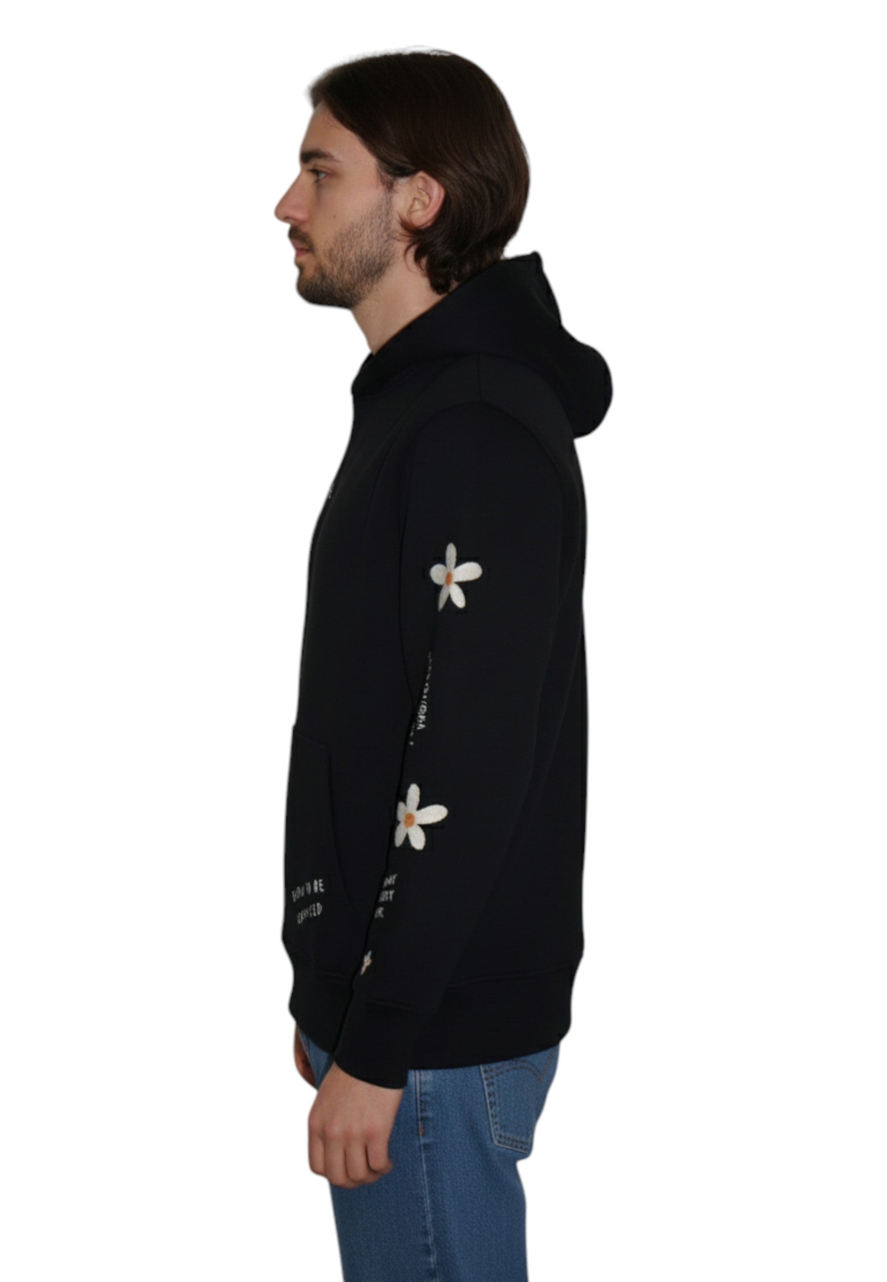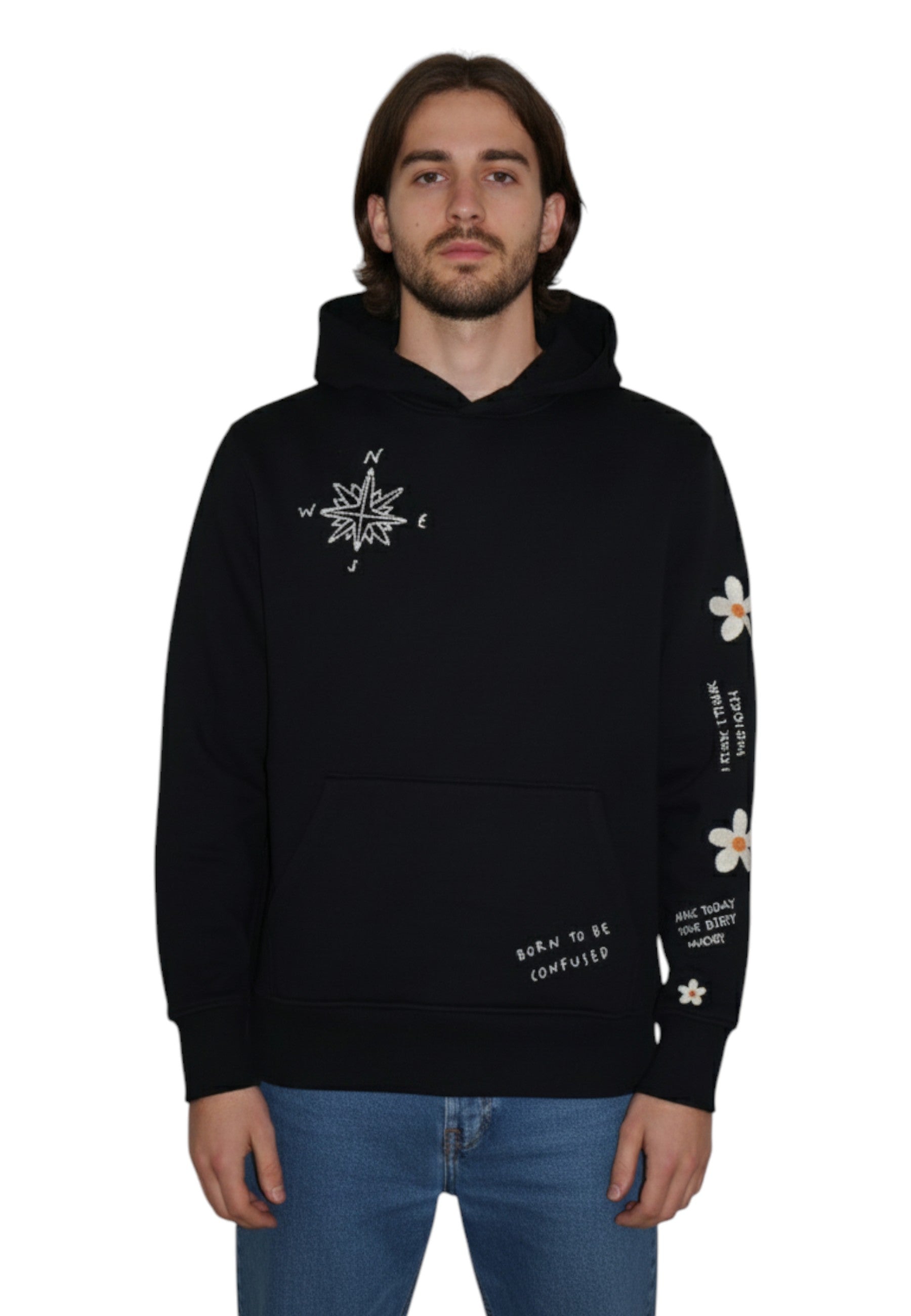 È impreziosita da un ricamo frontale e da un ulteriore dettaglio ricamato sulla manica sinistra, che donano carattere al look. La comoda tasca a marsupio con doppia apertura laterale aggiunge funzionalità e praticità.