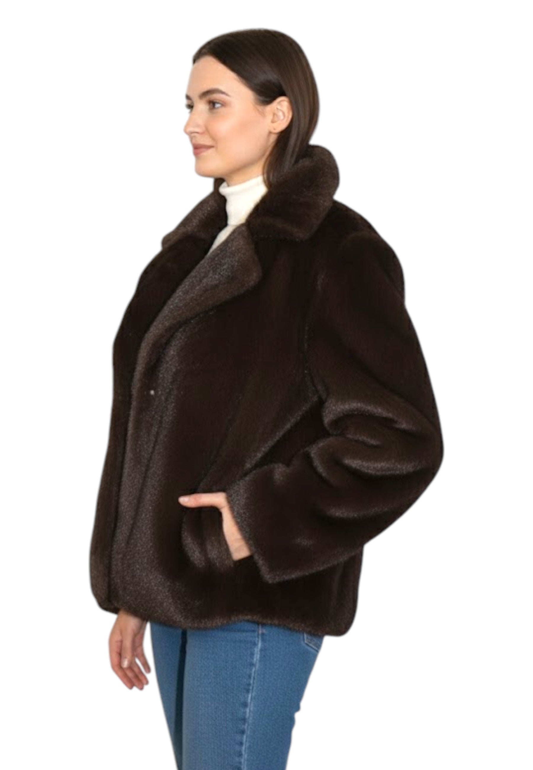 Il collo aperto dona un tocco contemporaneo e valorizza la linea del capo, mentre il taglio corto permette abbinamenti versatili con pantaloni, gonne o abiti. Le linee pulite e la vestibilità confortevole rendono questa giacca un must-have per chi ama un look chic e attuale.