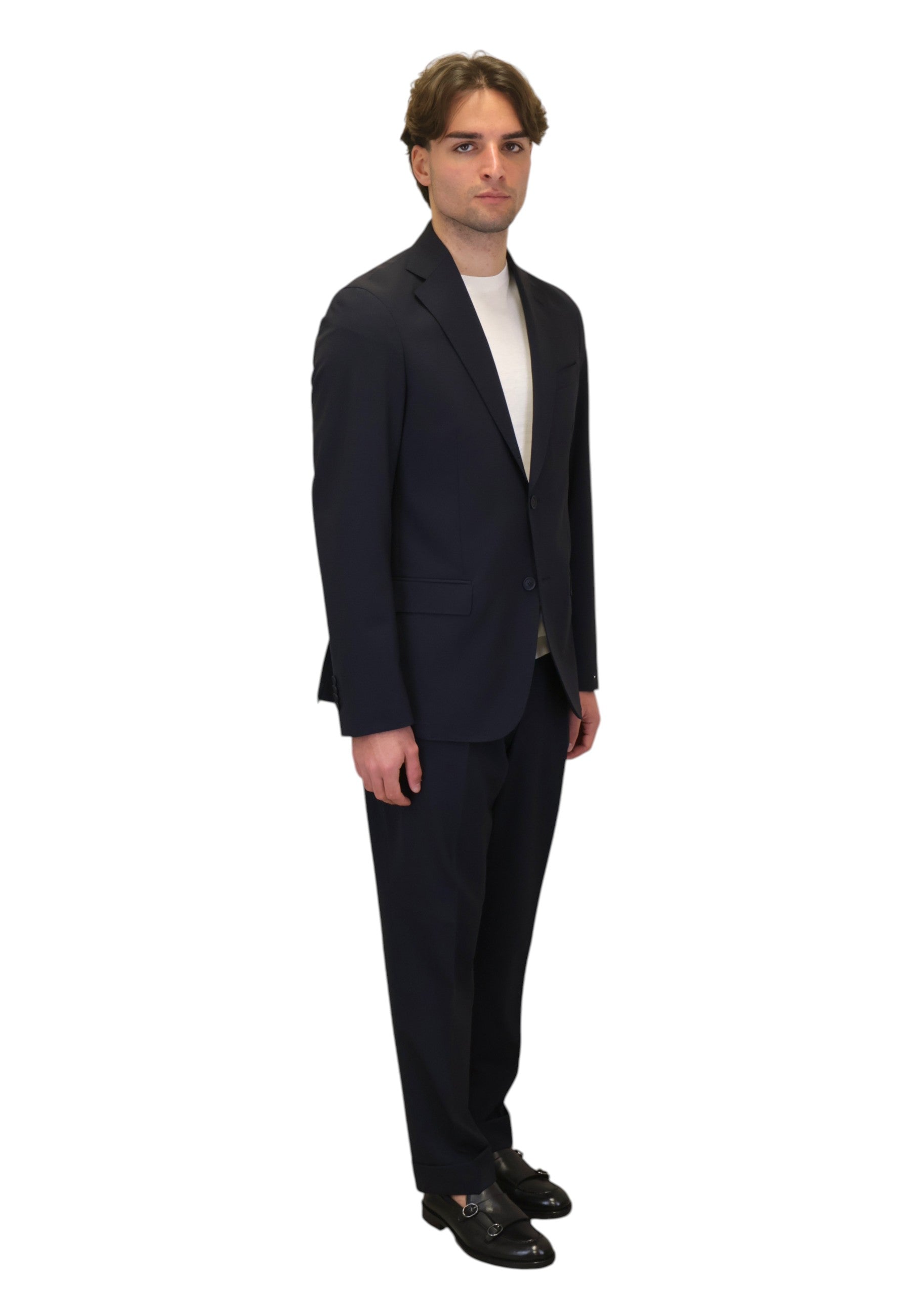 Perfetto per l’uomo che cerca un abito elegante in lana vergine, comodo e ricercato, questo modello rappresenta una scelta di classe per l’ufficio, le occasioni speciali o il guardaroba formale di alta qualità.
