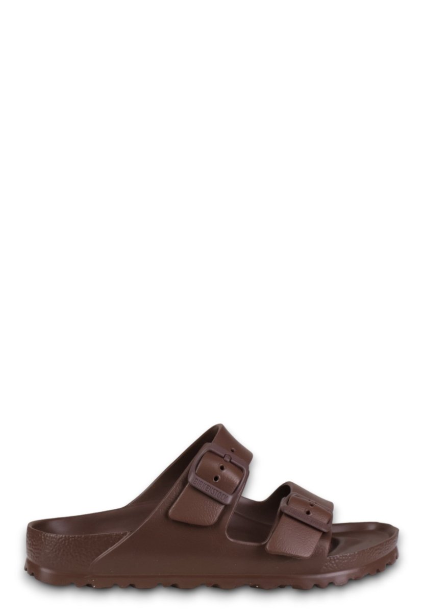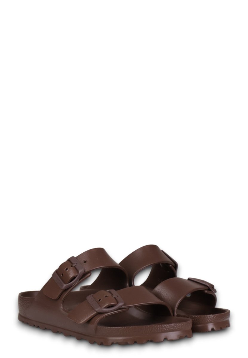 il sandalo birkenstock arizona in eva unisce lo stile iconico del modello classico alla massima praticità. realizzato in un materiale leggero, elastico e impermeabile, garantisce comfort tutto il giorno grazie al plantare anatomico birkenstock. perfetto per chi cerca una calzatura versatile, lavabile e resistente all’acqua, è ideale per le giornate estive senza rinunciare alla comodità e al design intramontabile del marchio.