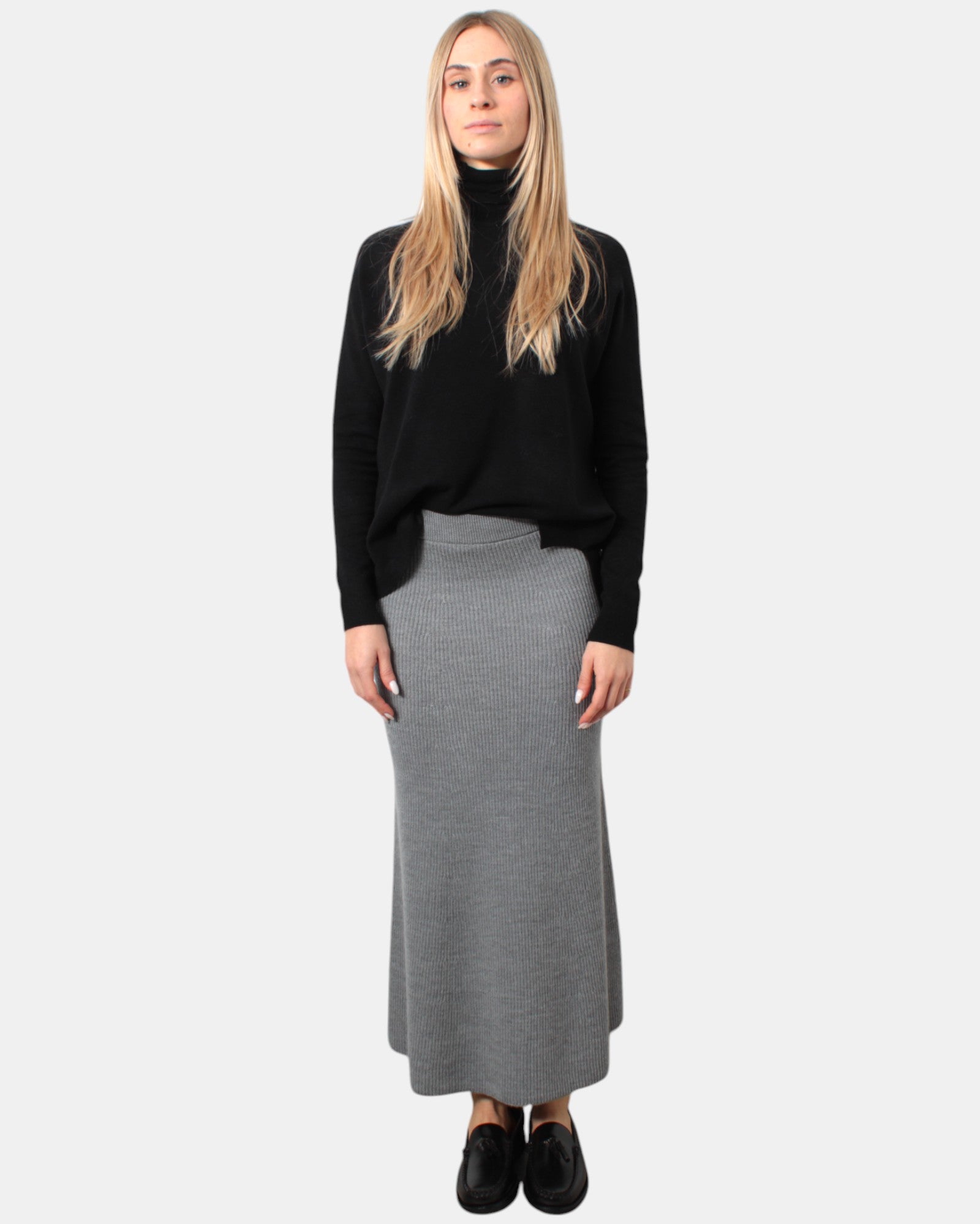 La gonna di Max Mara presenta elastico con coulisse in vita, dal tessuto composto in 100% lana vergine. Si consiglia lavaggio a mano. La modella è alta 1,69 m e indossa una 40