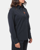 Dettaglio: I dettagli termonastrati e la chiusura frontale con bottoni nascosti offrono un tocco di innovazione e stile, rendendo questa camicia ideale per ogni occasione, dal lavoro agli eventi più formali.
