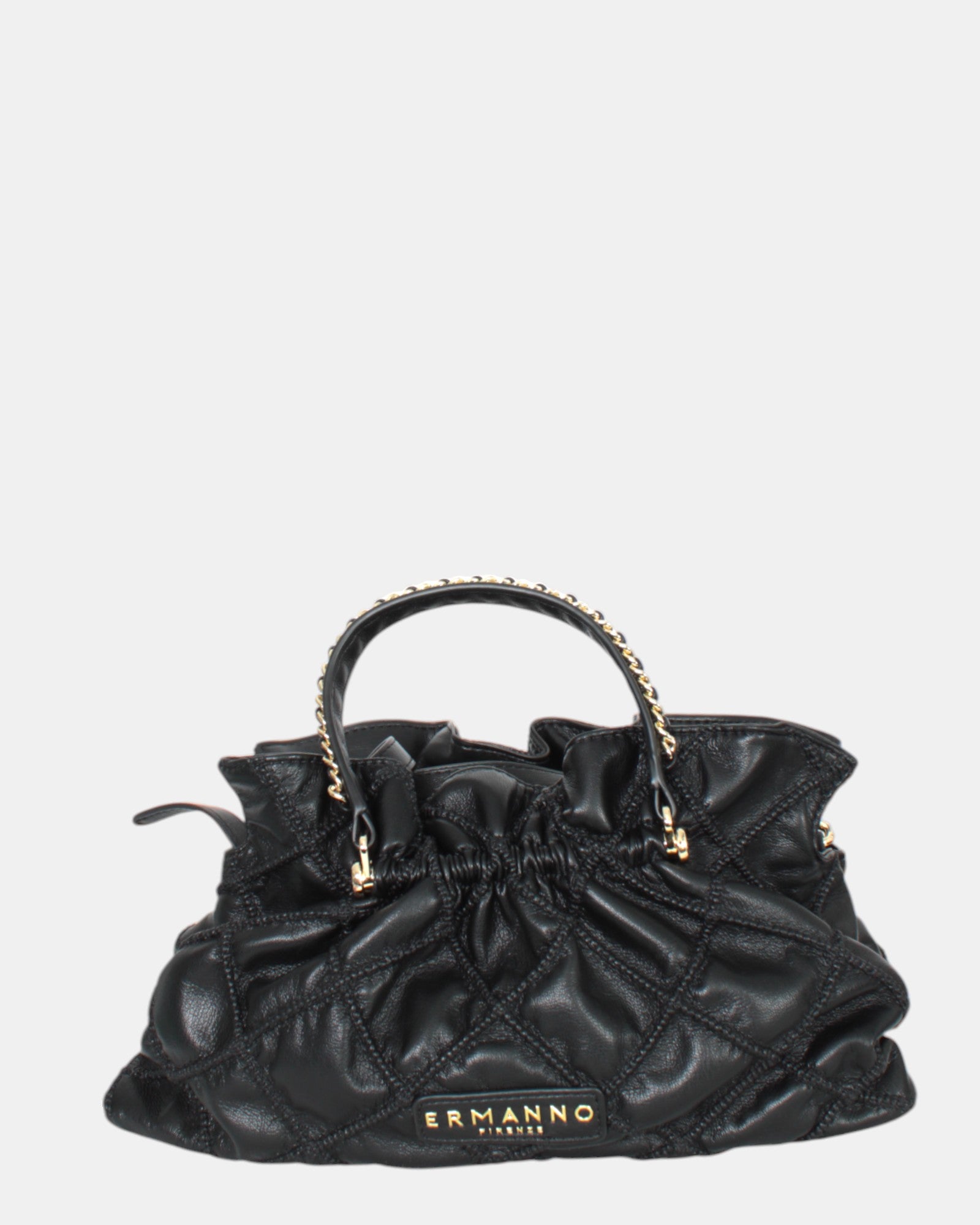 La borsa di Ermanno Scervino presenta chiusura a zip in ottone con tracolla removibile con dettagli in ottone, lucchetto con logo brand sulla parte laterale, con manici della borsa con dettagli in ottone, fantasia con pelle a frange affusolate. La borsa è composta in ecopelle