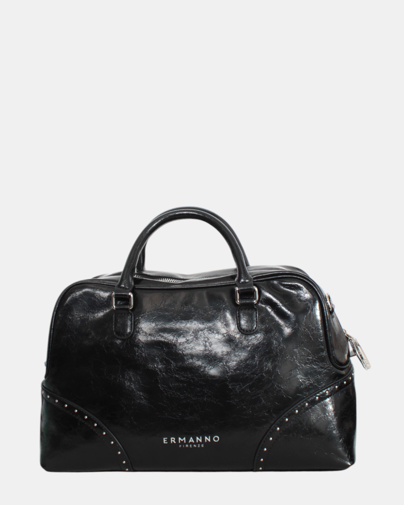 La borsa di Ermanno Scervino presenta logo sul fronte, chiusura con zip argentata, borsa in ecopelle con fantasia crepata, e dettagli con borchie
