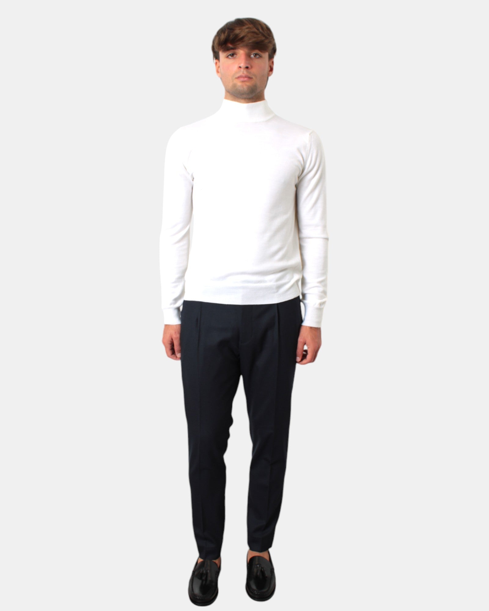 Il pantalone '' Riccardo '' di Be Able presenta elastico con coulisse, chiusura con bottoni e zip, due tasche a filo con una pens, due a tasche a filetto con bottone sul retro, dalla vestibilità regolare è composto per il 54% da lana vergine, 45% poliestere e 1% elastan. Si consiglia lavaggio a secco . Il modello è alto 1,79 m e indossa una 32