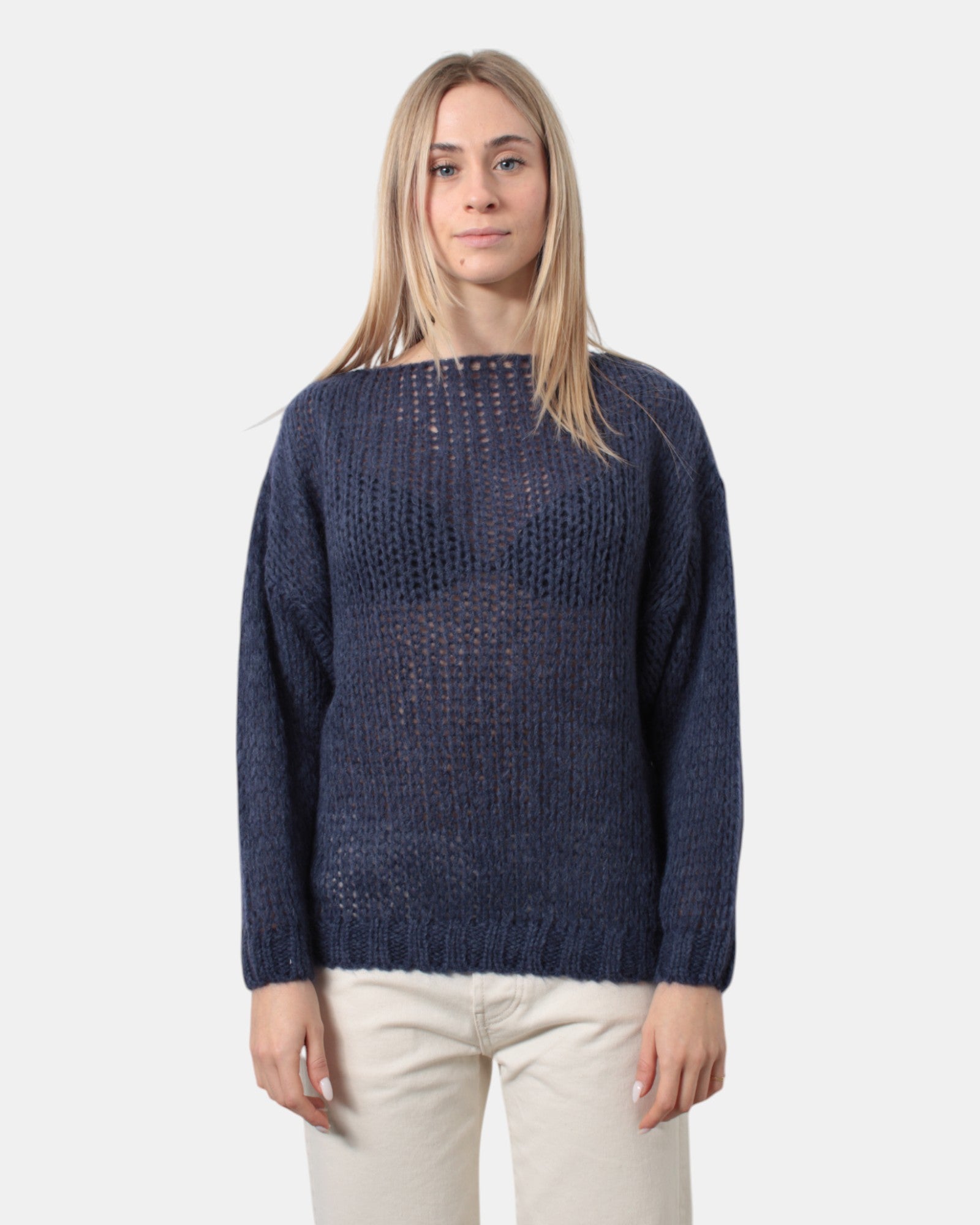 La maglia a girocollo di Hekla&Co presenta fondo e polsi a costine, collo largo , fantasia a losanghe sottili intrecciate , dalla mano calda dovuta alla sua composizione in 42% acrilica, 30% poliammide, 14% mohair e 14% lana. Si consiglia lavaggio a massimo 30 gradi. La modella è alta 1,69 m e indossa una S