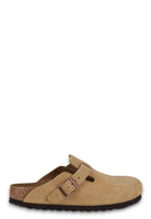 il sabot boston di birkenstock, un iconico modello che unisce stile e comfort in ogni passo. realizzato in pelle scamosciata di alta qualità con una raffinata finitura cerata, questo sabot garantisce morbidezza e resistenza. il plantare anatomico in sughero e lattice si adatta perfettamente alla forma del piede, offrendo sostegno e comfort duraturo, mentre la suola in eva e gomma assicura leggerezza e stabilità. il dettaglio della fibbia regolabile permette una calzata personalizzata, rendendo il boston la scelta ideale per chi cerca eleganza senza rinunciare al benessere quotidiano. perfetto da abbinare a look casual o raffinati, questo modello birkenstock è un must-have per chi ama coniugare tradizione e tendenza.