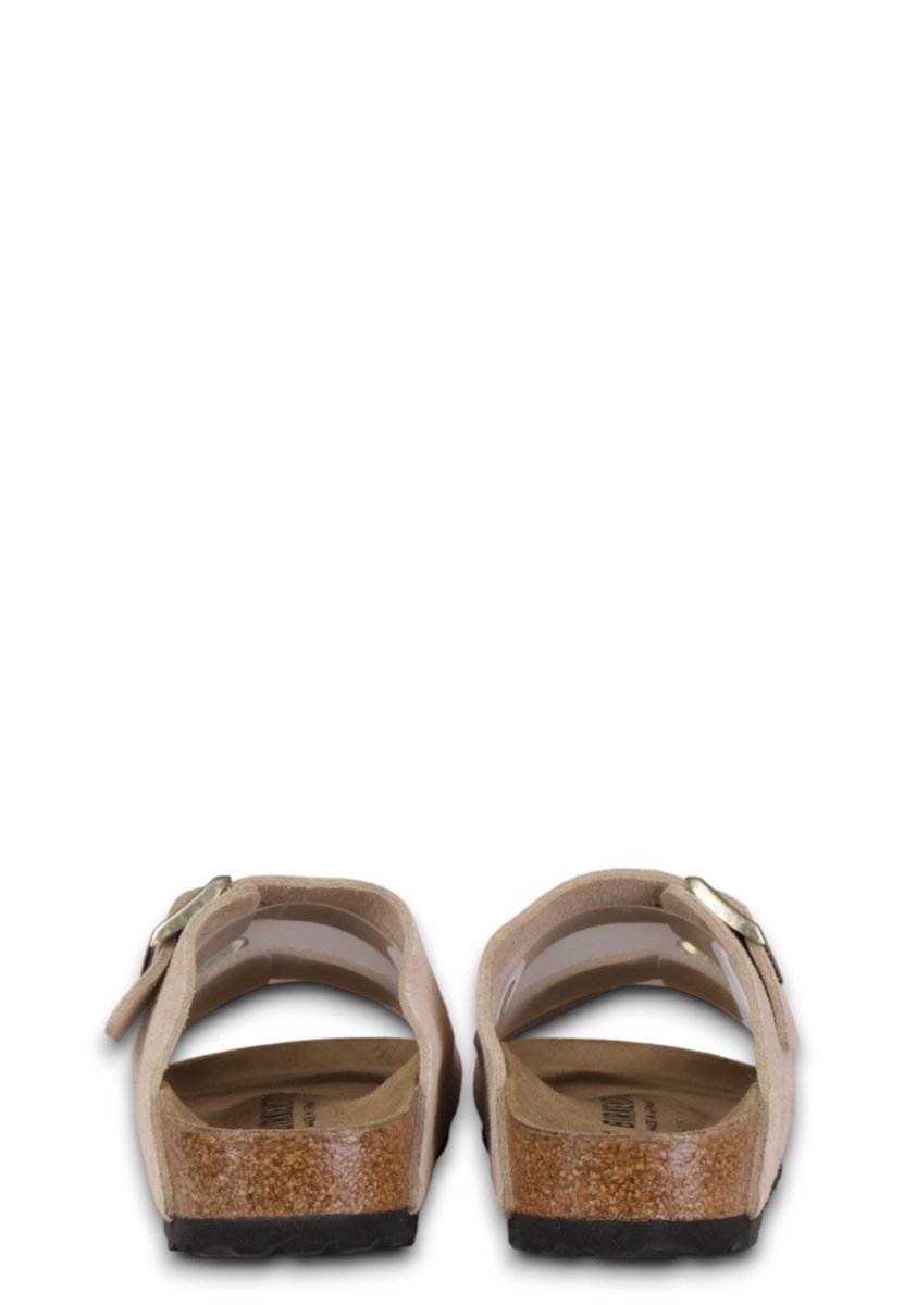 il sandalo birkenstock arizona unisce comfort e stile in un design casual perfetto per ogni occasione. la tomaia in pelle scamosciata morbida avvolge il piede come una seconda pelle, mentre il plantare anatomico in sughero e lattice garantisce un sostegno naturale e una calzata perfetta tutto il giorno. i cinturini con due fibbie regolabili permettono una vestibilità personalizzata, completando un modello iconico che unisce funzionalità e stile. la suola in eva assicura leggerezza e ammortizzazione ottimale, rendendo questo sandalo ideale per chi cerca comodità senza rinunciare al design.