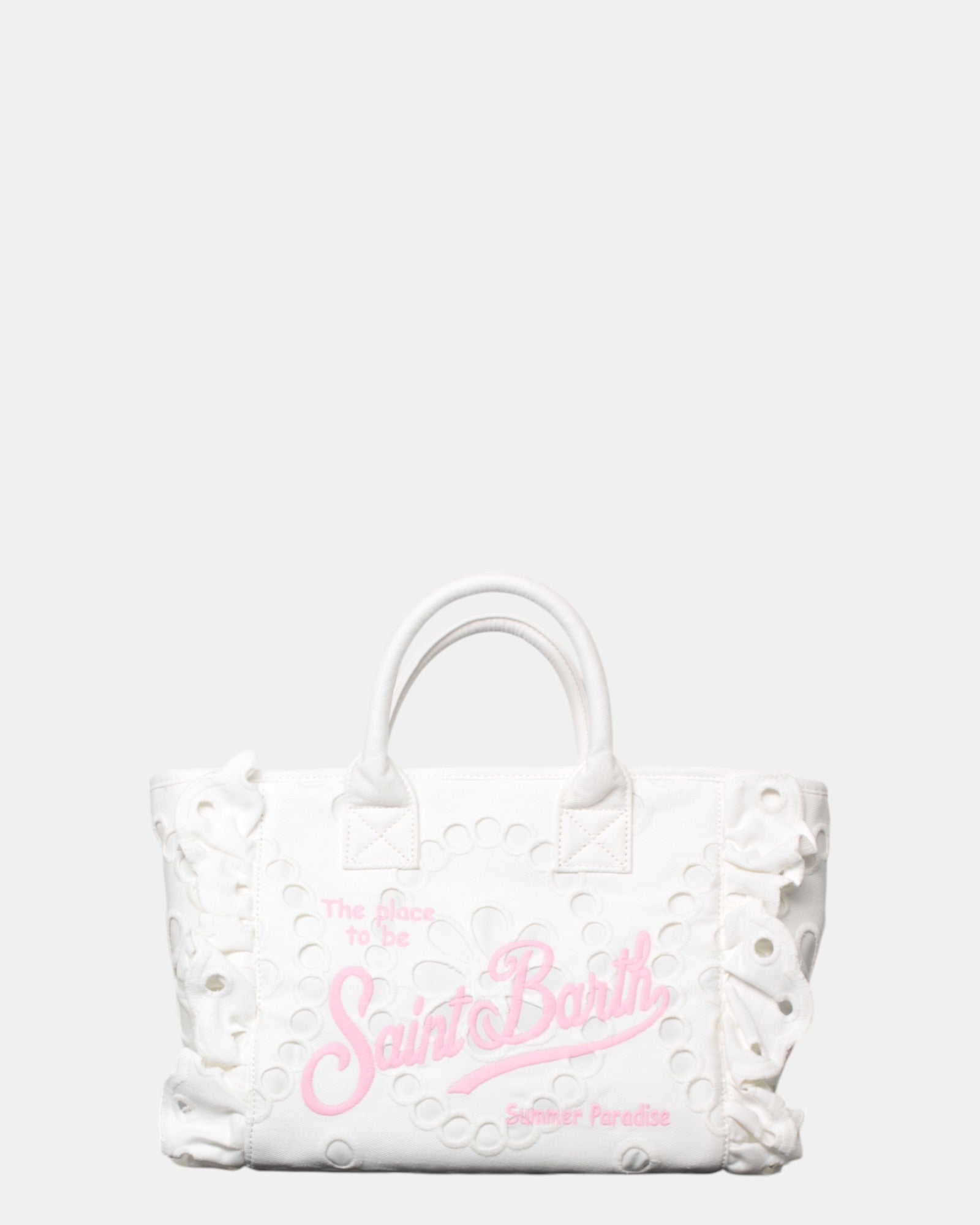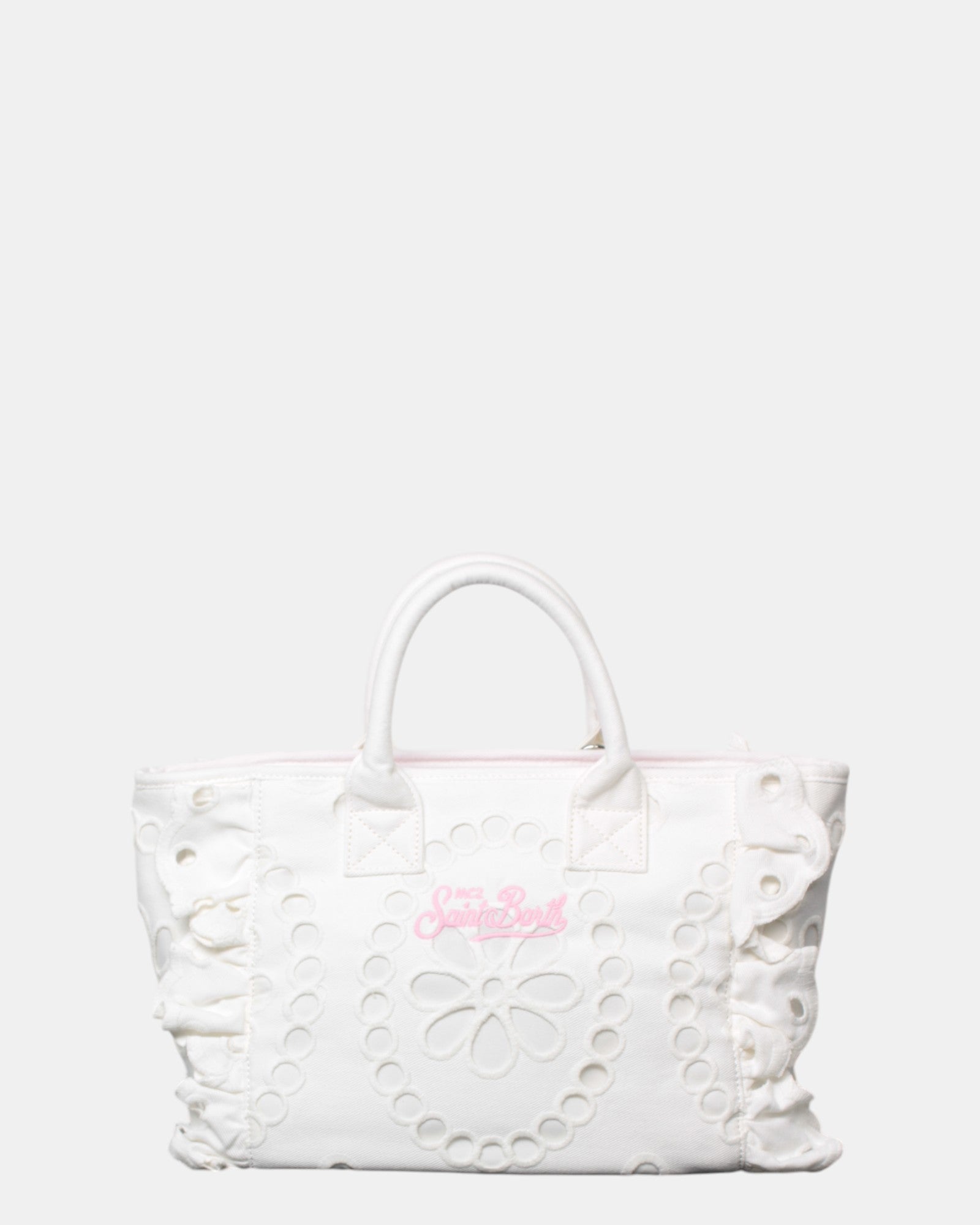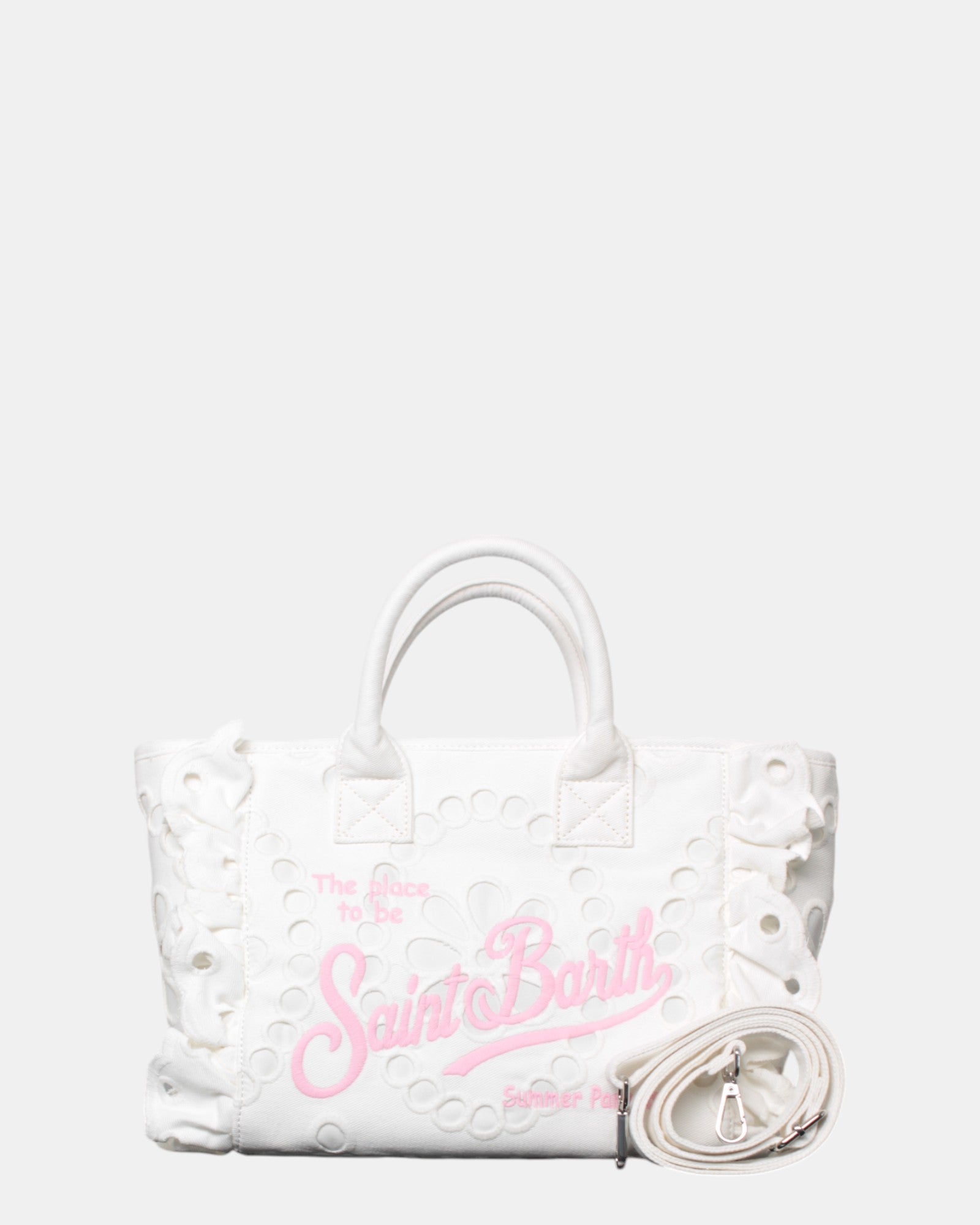 - DETTAGLI: tessuto in pizzo sangallo, logo stampato, patta interna con chiusura zip, tasca interna , tracolla removibile