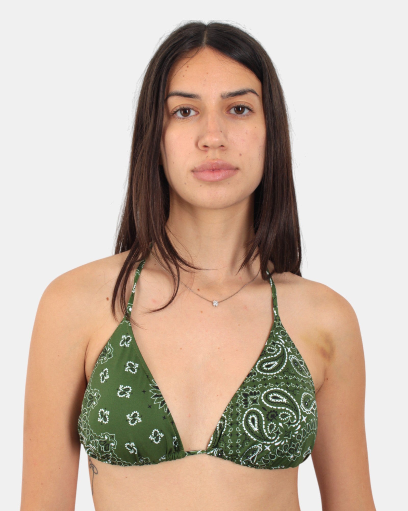 Il triangolo di MC2 Saint Barth presenta chiusura con classico laccetto al collo e sulla schiena, ed è dotato di coppe removibili per una vestibilità personalizzata. Composizione: 90% poliammide, 10% elastan. Si consiglia il lavaggio a mano. La modella in foto è alta 1,65 m e indossa una taglia M.