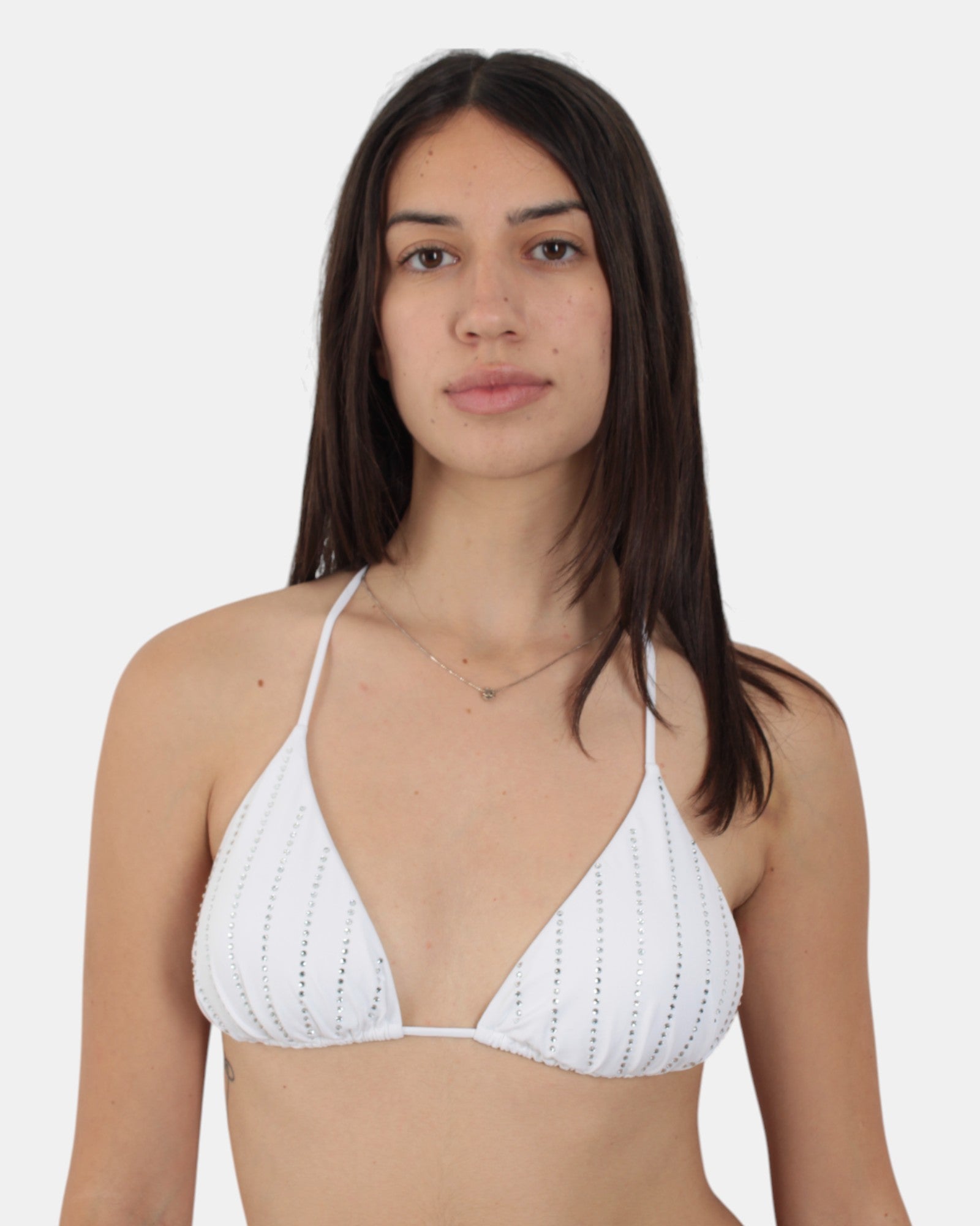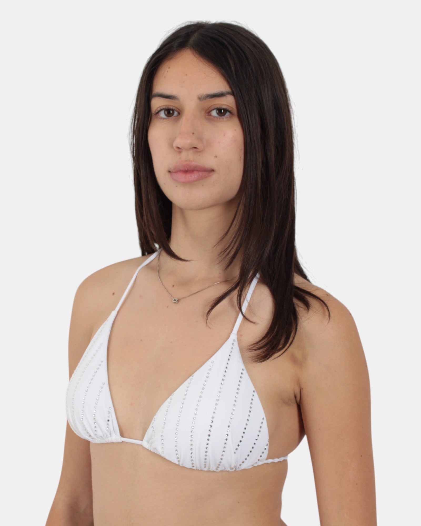 Il triangolo di MC2 Saint Barth presenta chiusura con classico laccetto al collo e sulla schiena, ed è dotato di coppe removibili per una vestibilità personalizzata. Composizione: 90% poliammide, 10% elastan. Si consiglia il lavaggio a mano. La modella in foto è alta 1,65 m e indossa una taglia M.