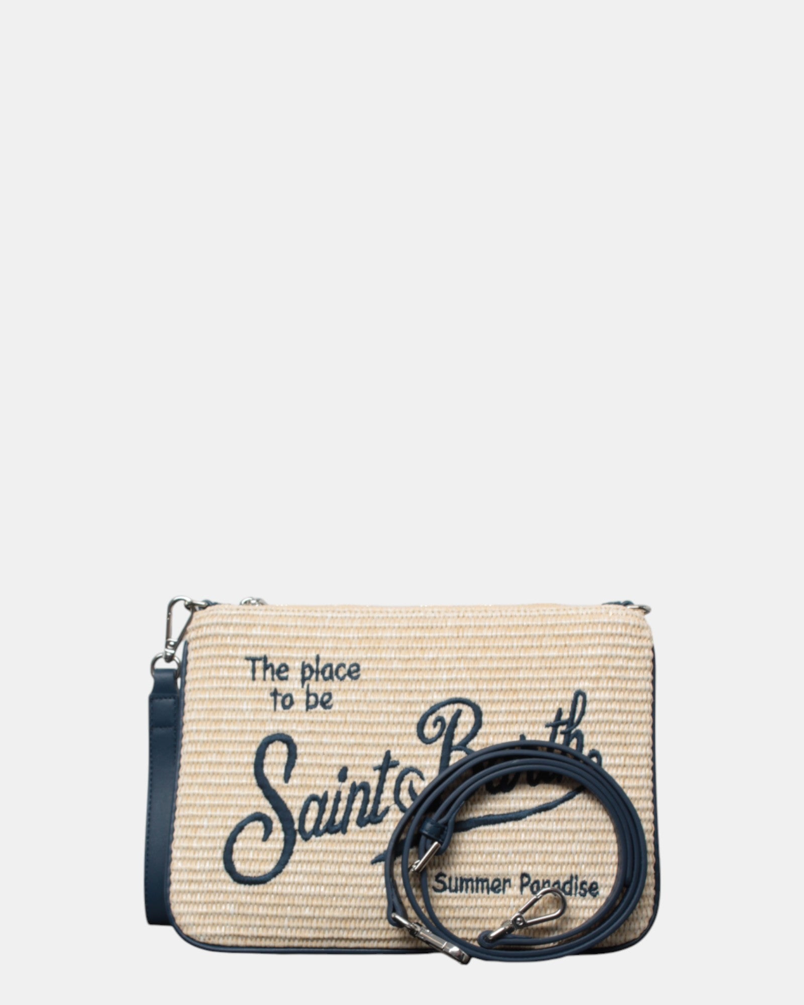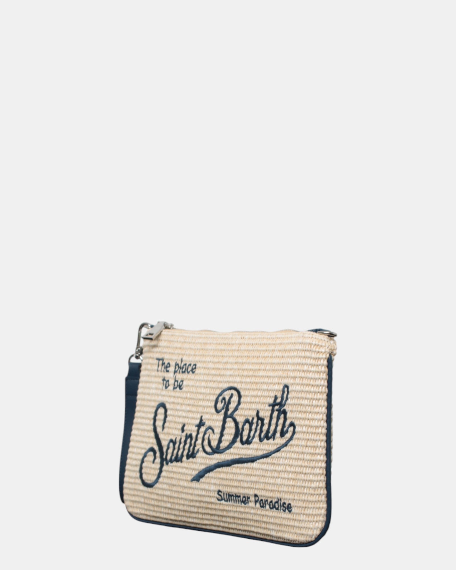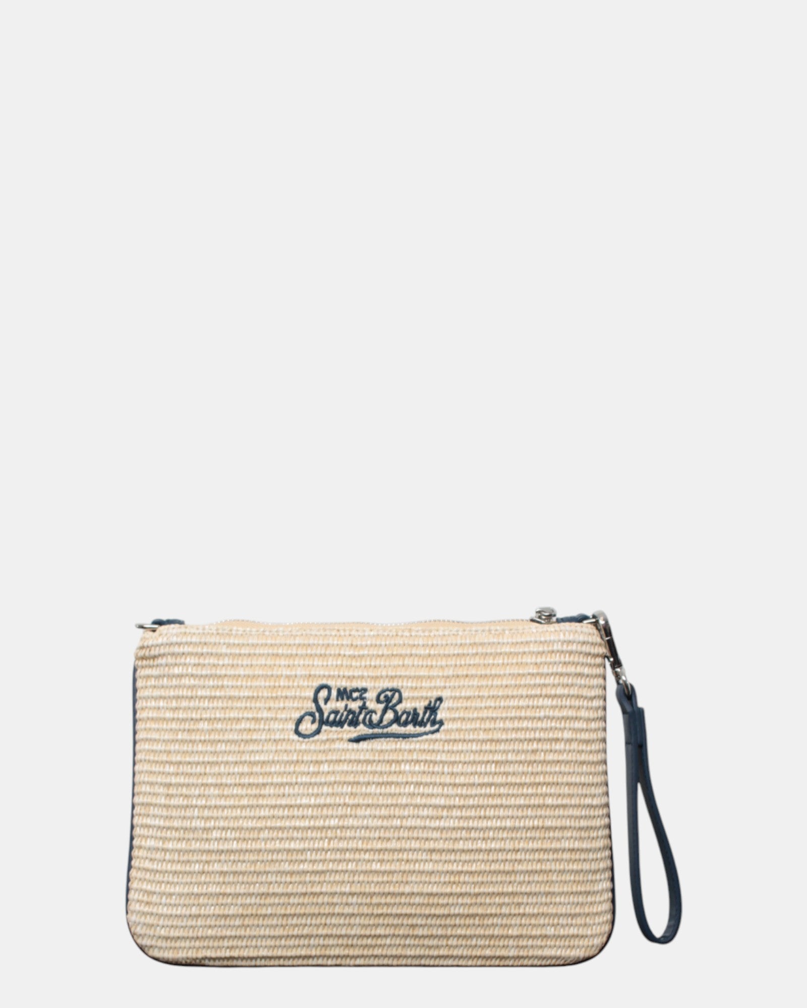 - DETTAGLI:logo ricamato sul fronte e sul retro a contrasto, chiusura zip metallica, tracolla in similpelle regolabile ed amovibile e cinturino da polso amovibile