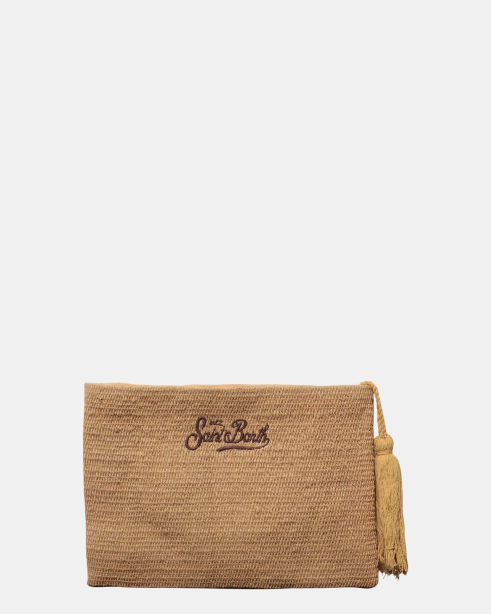 - DETTAGLI: struttura in paglia intrecciata, chiusura superiore con zip, tasca interna