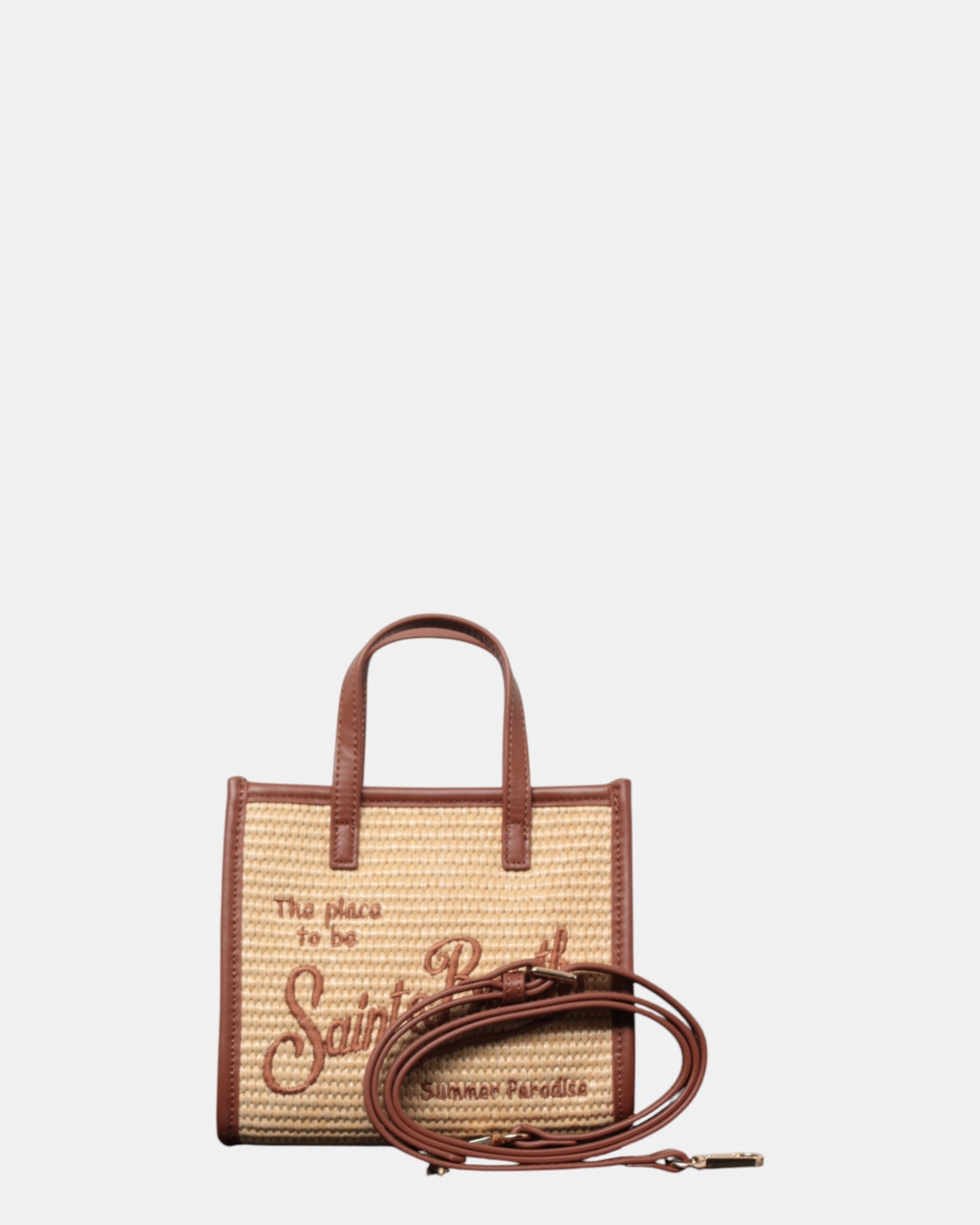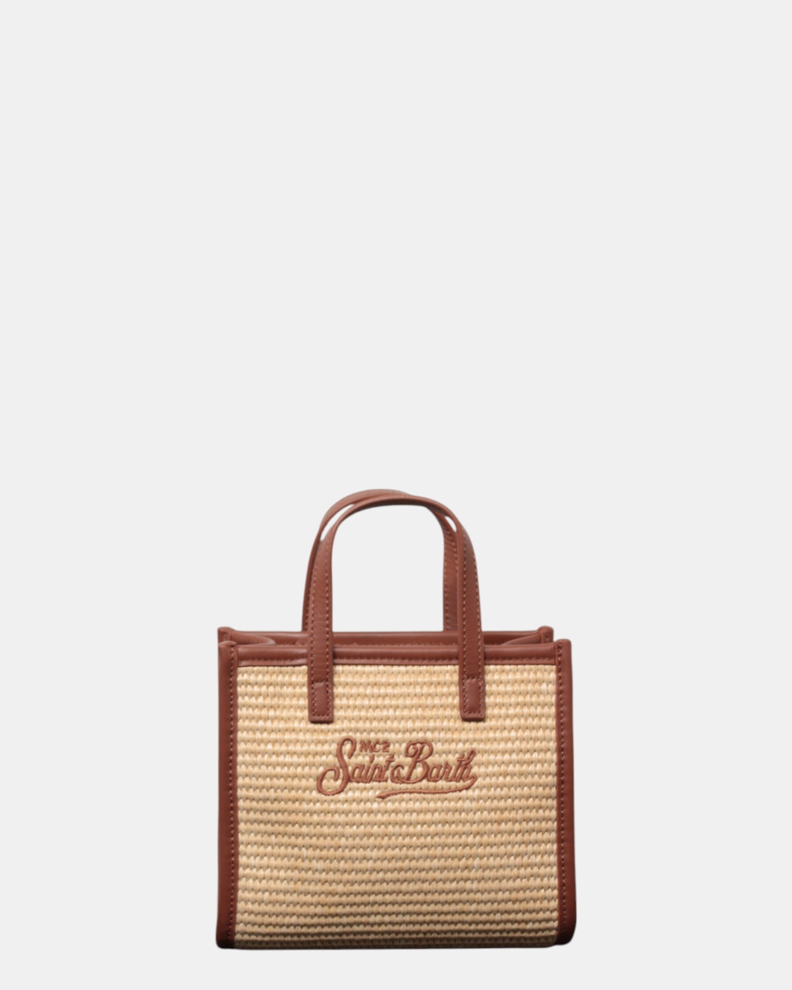 STRAW HANDBAG WITH PIPING - 1118 EMB