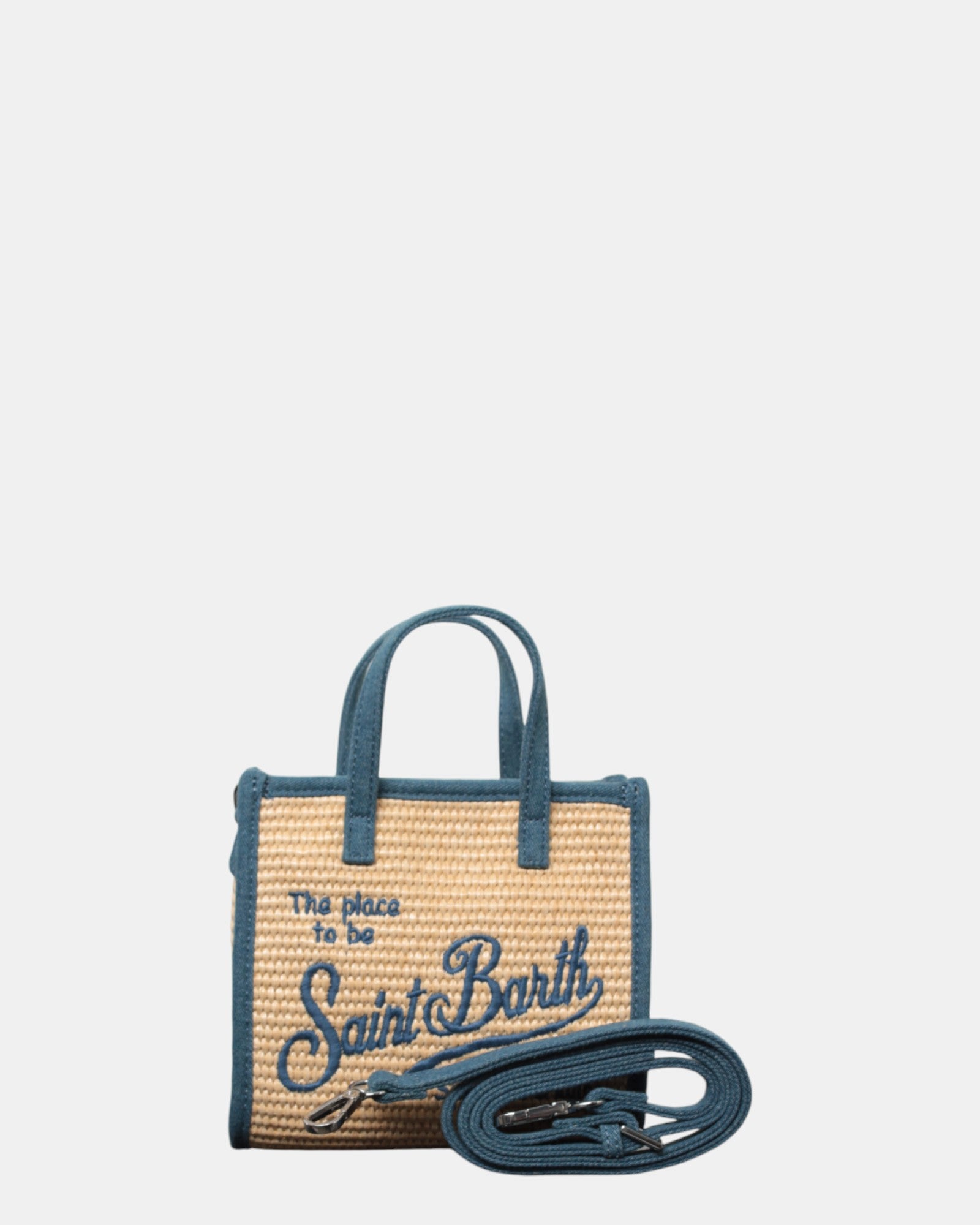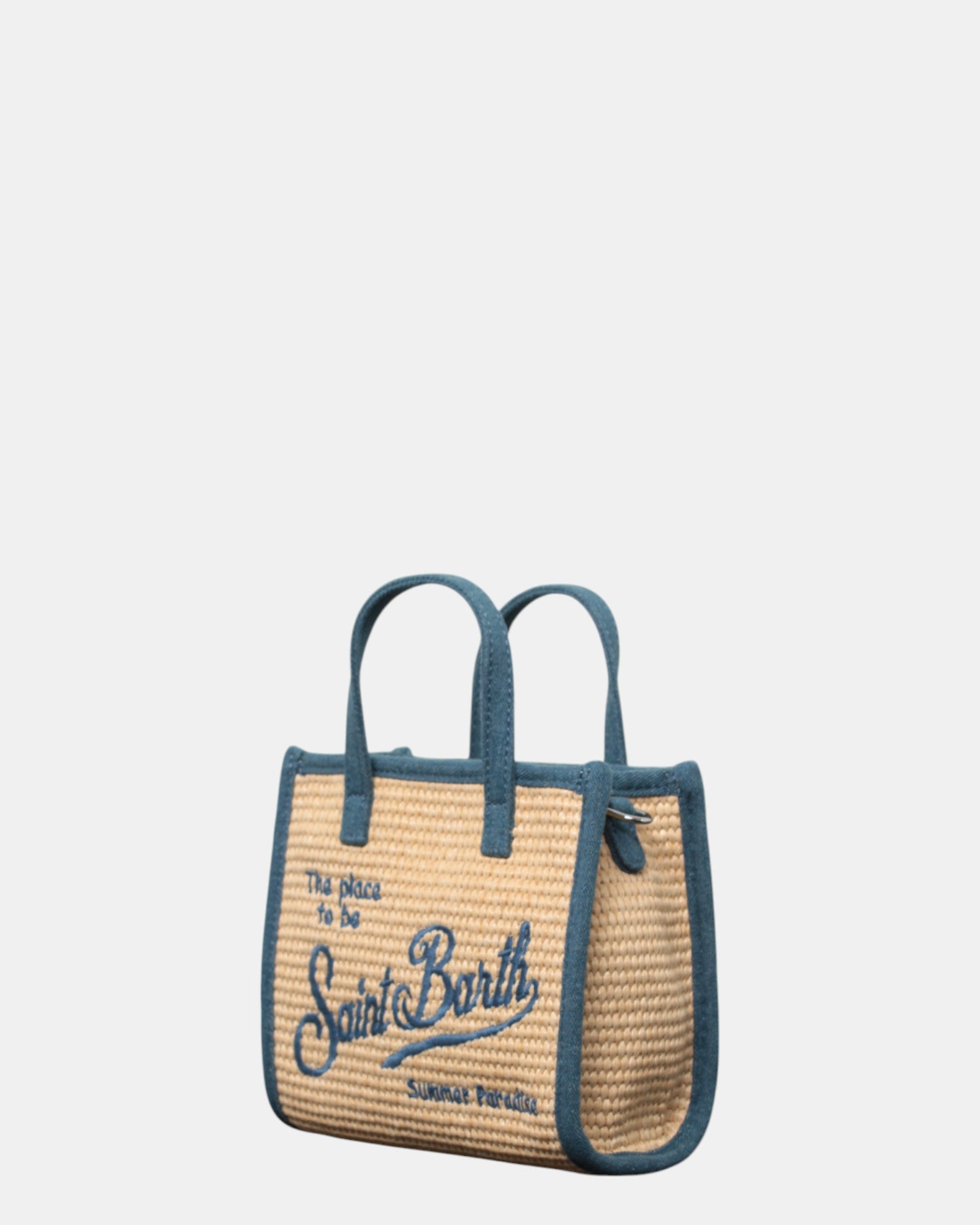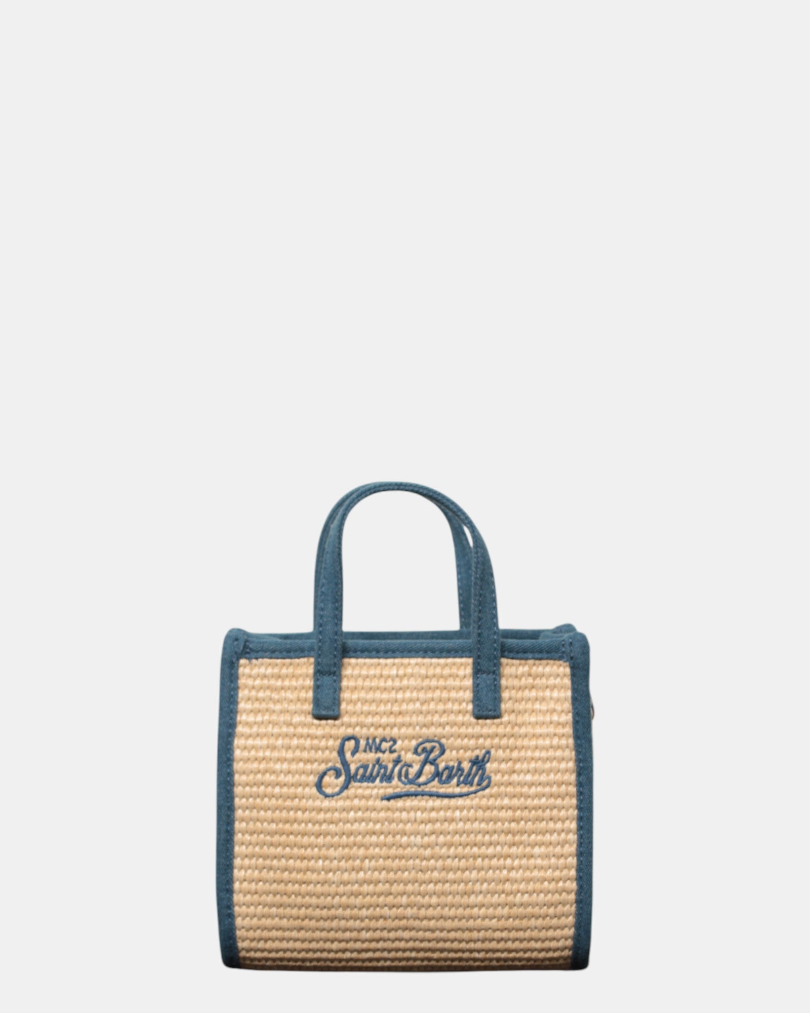 STRAW HANDBAG WITH PIPING - 11 DENIM EMB