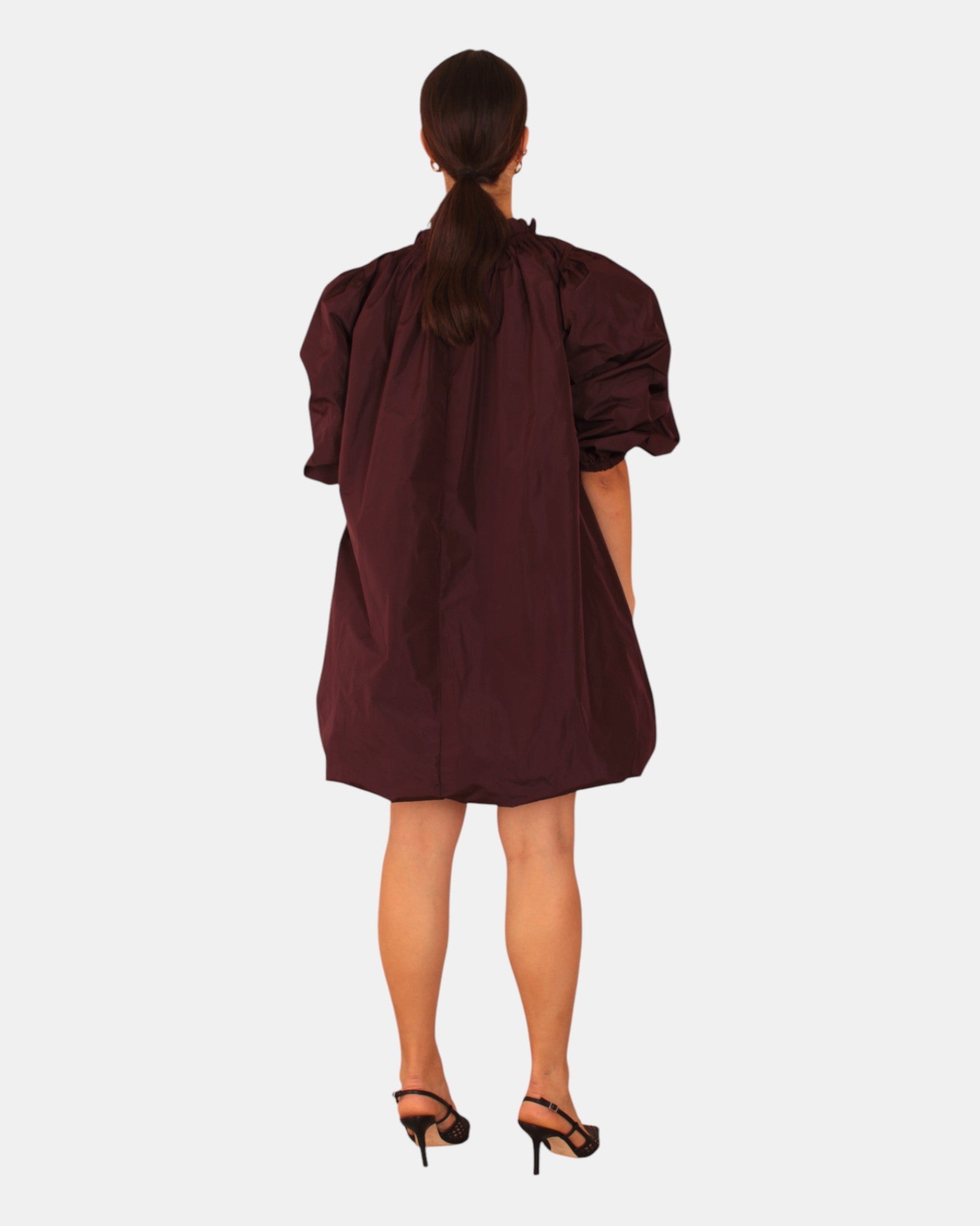il vestito di liviana conti presenta scollo a barca con manica a sbuffo, dalla mano fresca dovuta alla sua composizione in 67%Acetato e 33%poliestere. Si consiglia lavaggio a mano. La modella è alta 1,68 m e indossa una 40
