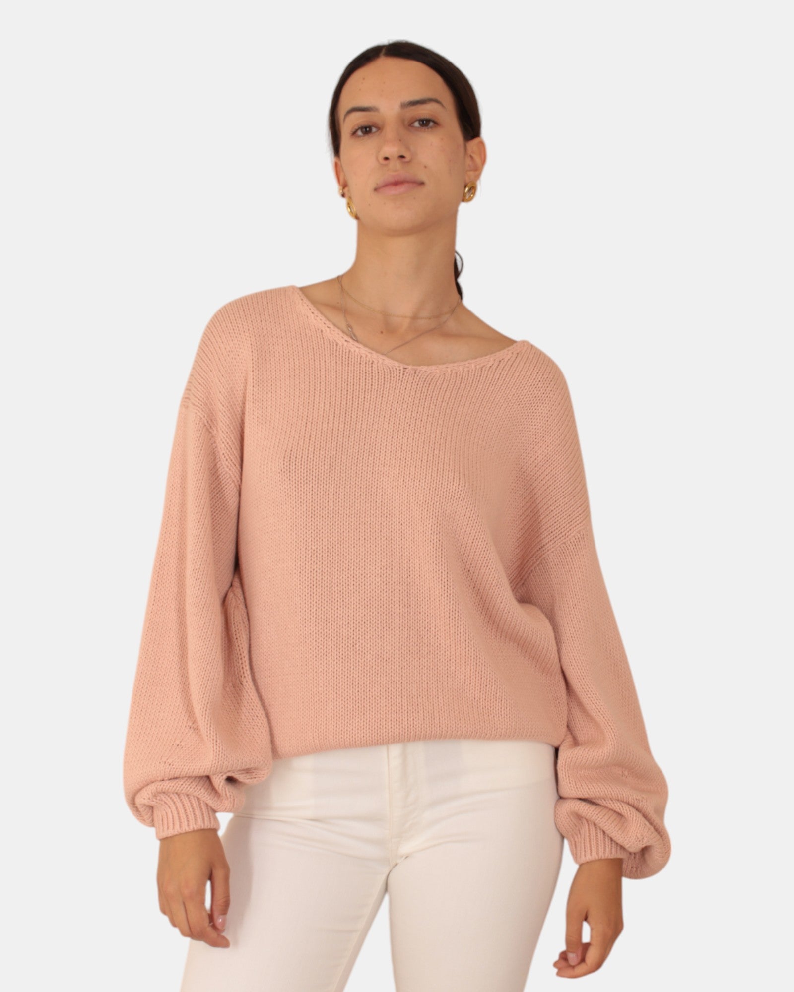 La maglia a girocollo di Liviana Conti presenta una silhouette morbida, scollo a V, maniche lunghe con spalla scesa e finiture a costine. Realizzata in 100% cotone, si consiglia lavaggio a mano. La modella è alta 1,68 m e indossa una taglia S.