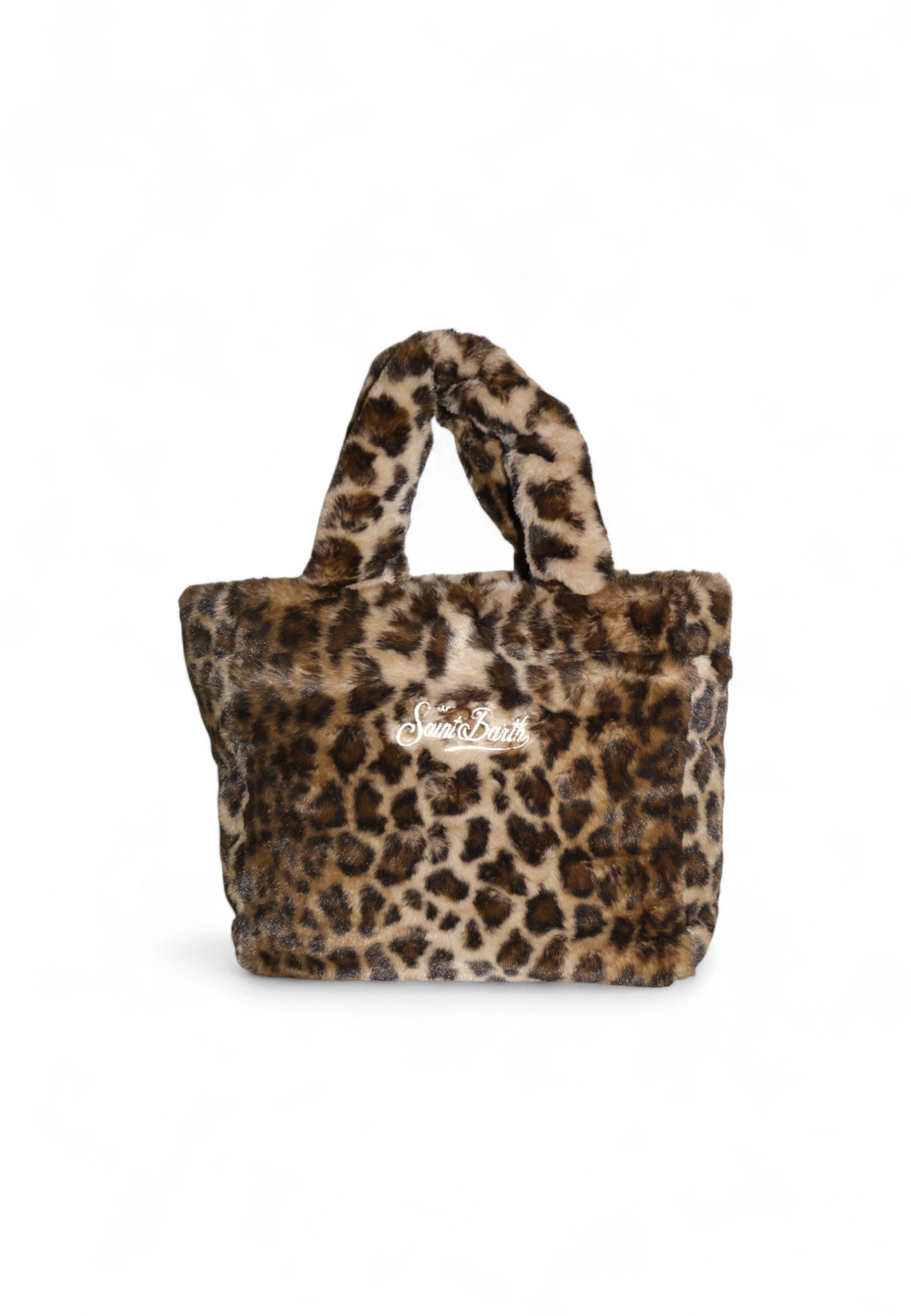 la borsa Colette Soft Fur Leopard 1910 EMB di MC2 Saint Barth conquista con il suo effetto teddy e la grintosa fantasia leopardata. Il tessuto effetto peluche in marrone caldo aggiunge una nota cozy al tuo look, perfetta per le stagioni fredde ma adatta anche come statement bag tutto l’anno.
