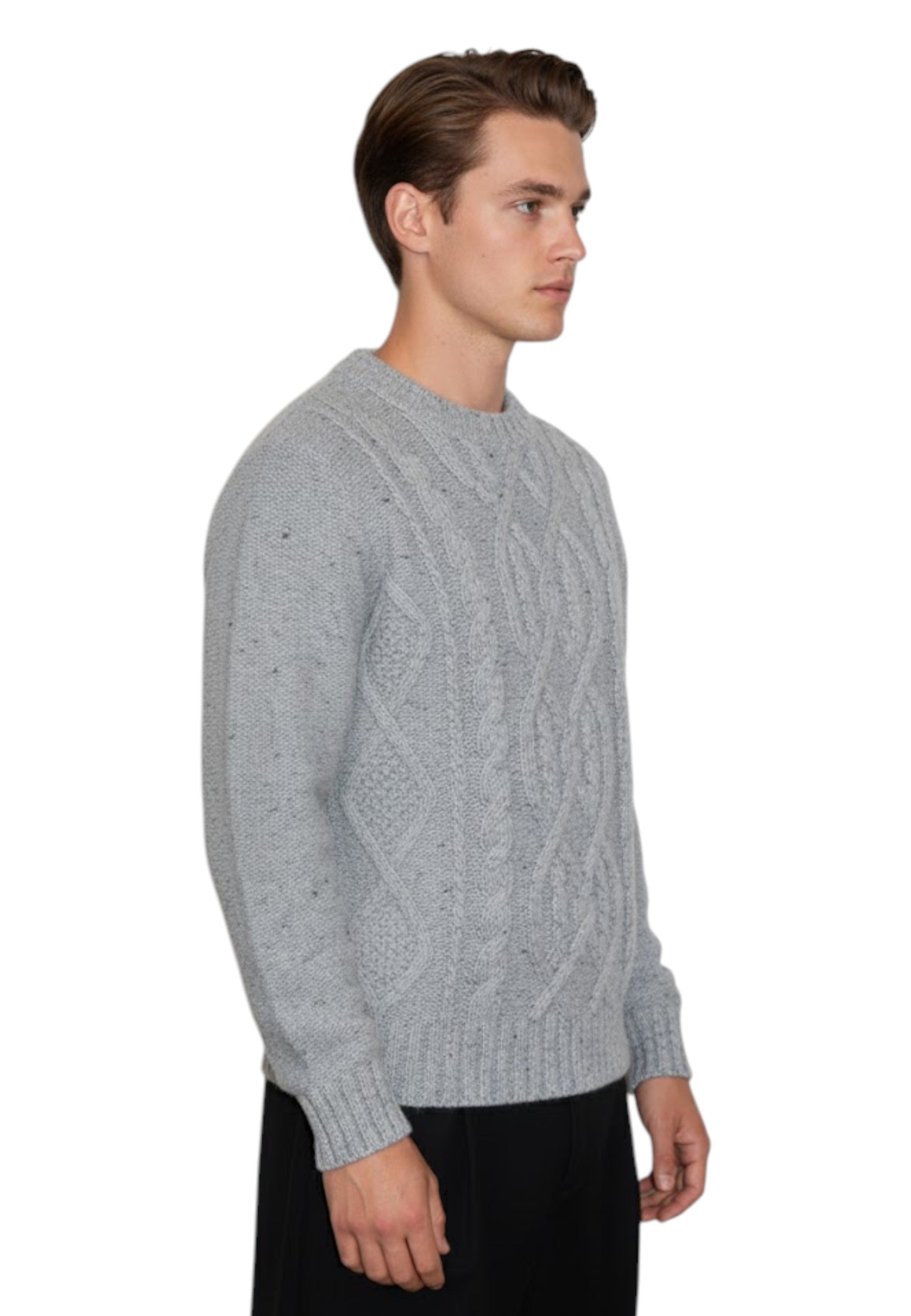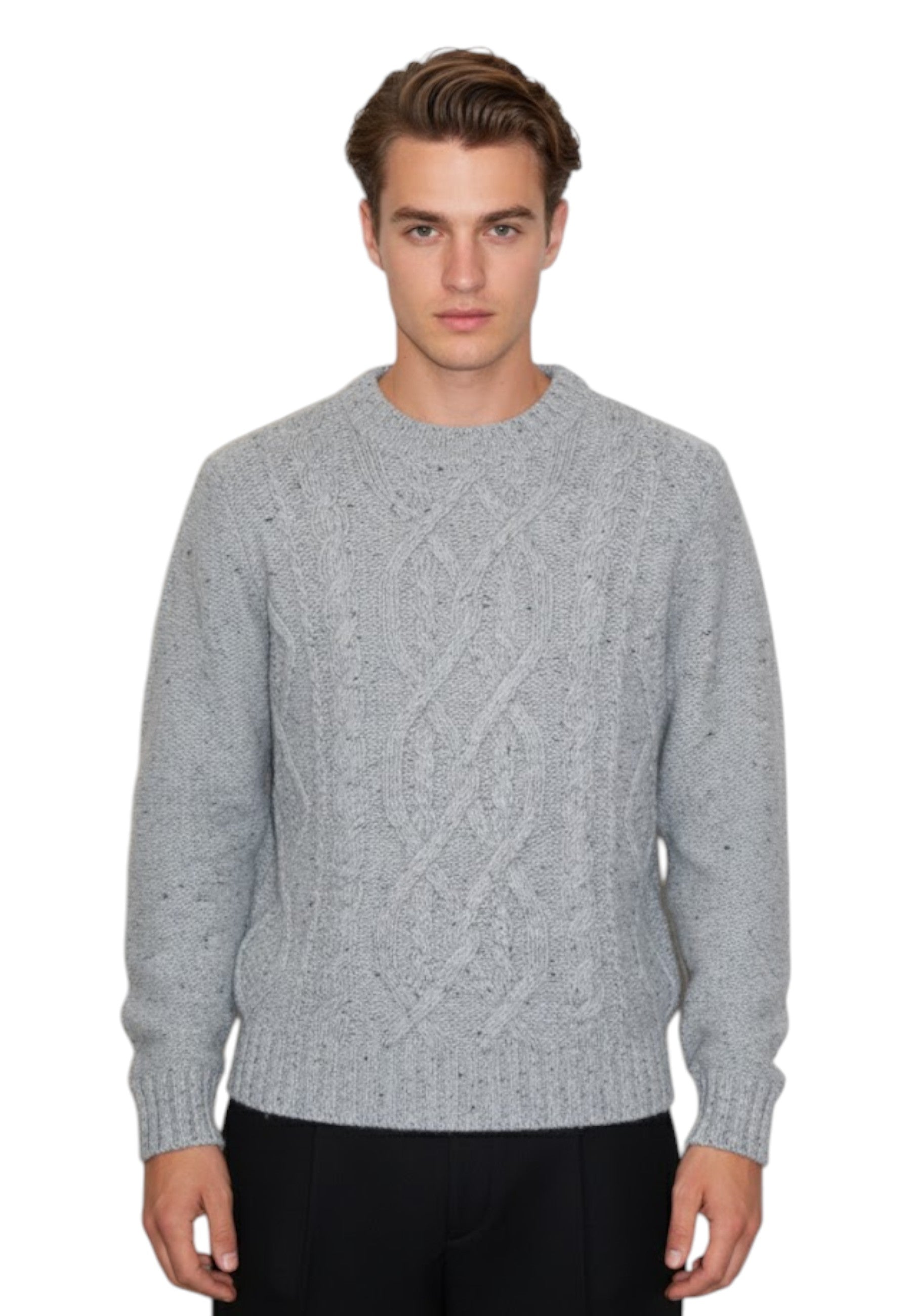 La qualità dei materiali utilizzati garantisce una morbidezza straordinaria e una durata nel tempo, mantenendo al contempo il calore necessario durante le stagioni fredde. Il design a intreccio aggiunge un tocco di sofisticatezza e rende questo maglione facilmente abbinabile a qualsiasi outfit.