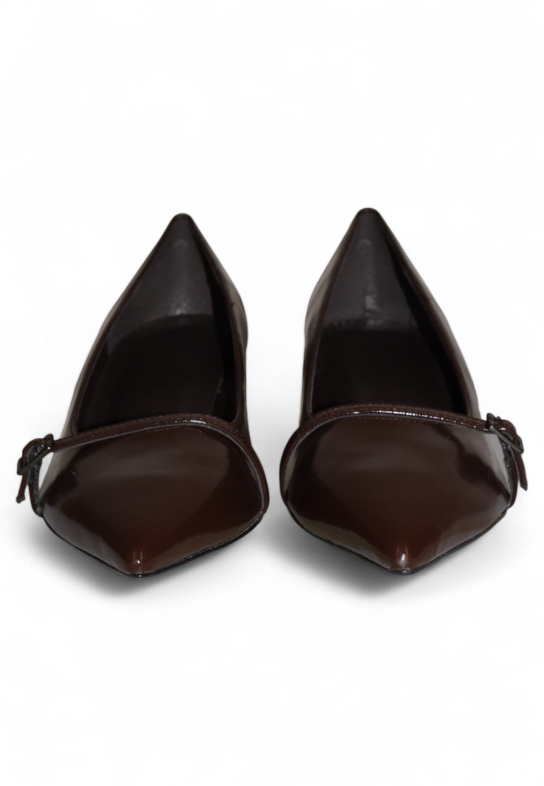 Decolleté in vernice caffè dal design elegante e moderno, arricchita da una raffinata fibbia laterale. Il tacco da 4 cm garantisce comfort e femminilità, mentre il fondo in cuoio con antiscivolo assicura stabilità e sicurezza ad ogni passo. Perfetta per chi cerca uno stile chic e versatile, adatto a ogni occasione.