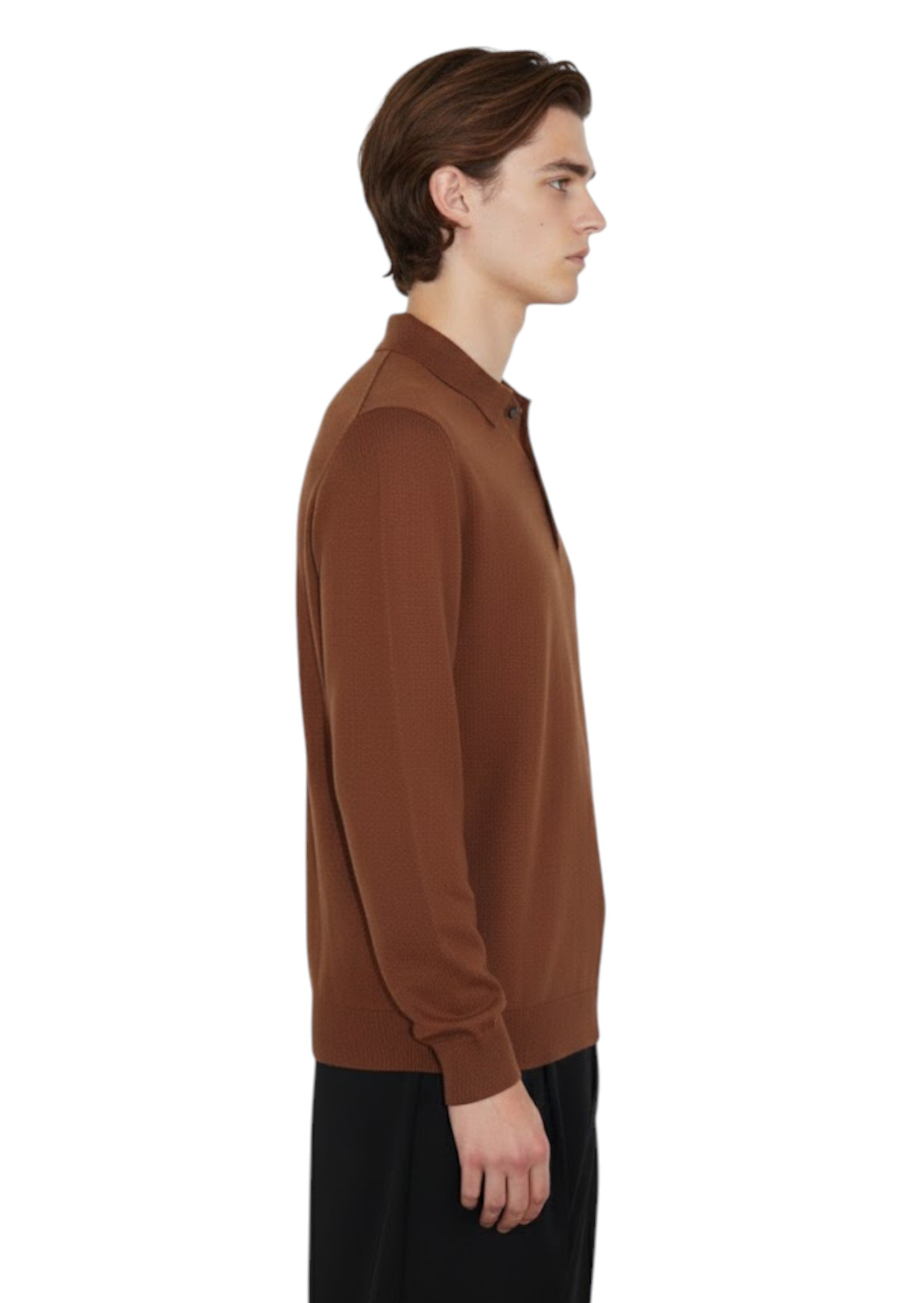 Questa polo si distingue per il suo raffinato color marrone e la morbidezza del tessuto di alta qualità. Il design con colletto a tre bottoni aggiunge un tocco di classe, rendendola adatta sia per occasioni casual che per eventi più formali. La vestibilità regular offre un comfort ottimale, permettendoti di muoverti liberamente durante tutta la giornata.