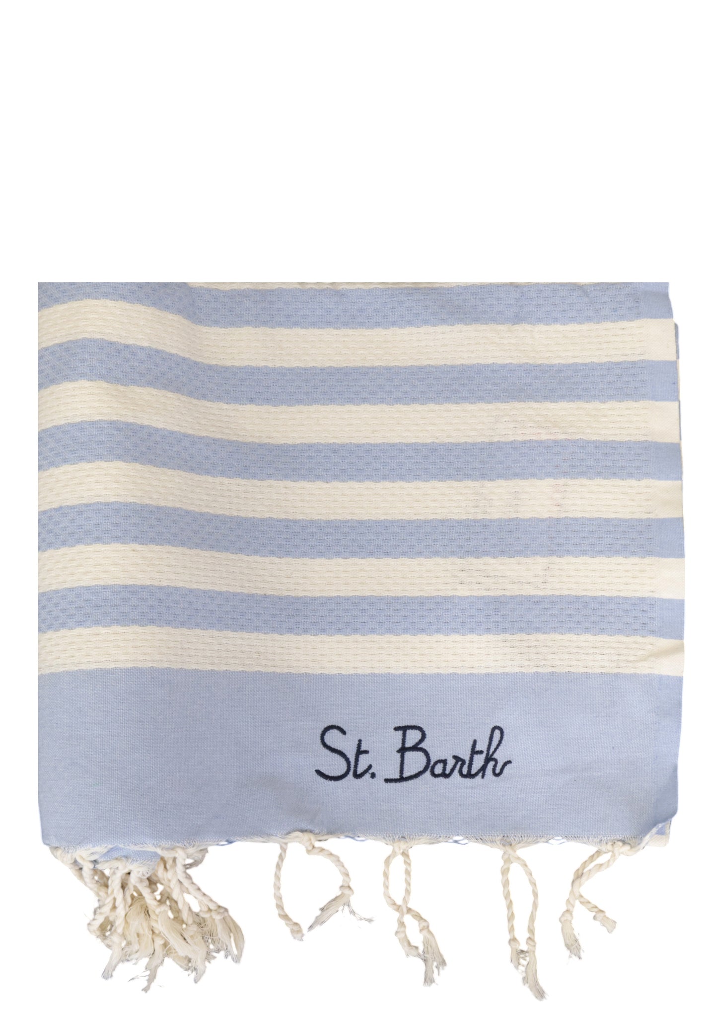 Il design essenziale è impreziosito dal ricamo esclusivo del logo St. Barth, dettaglio iconico che aggiunge un tocco distintivo e raffinato. Gli orli con frange completano il look con un richiamo allo stile mediterraneo, rendendo questo telo mare elegante e versatile anche come pareo o copritelo.
