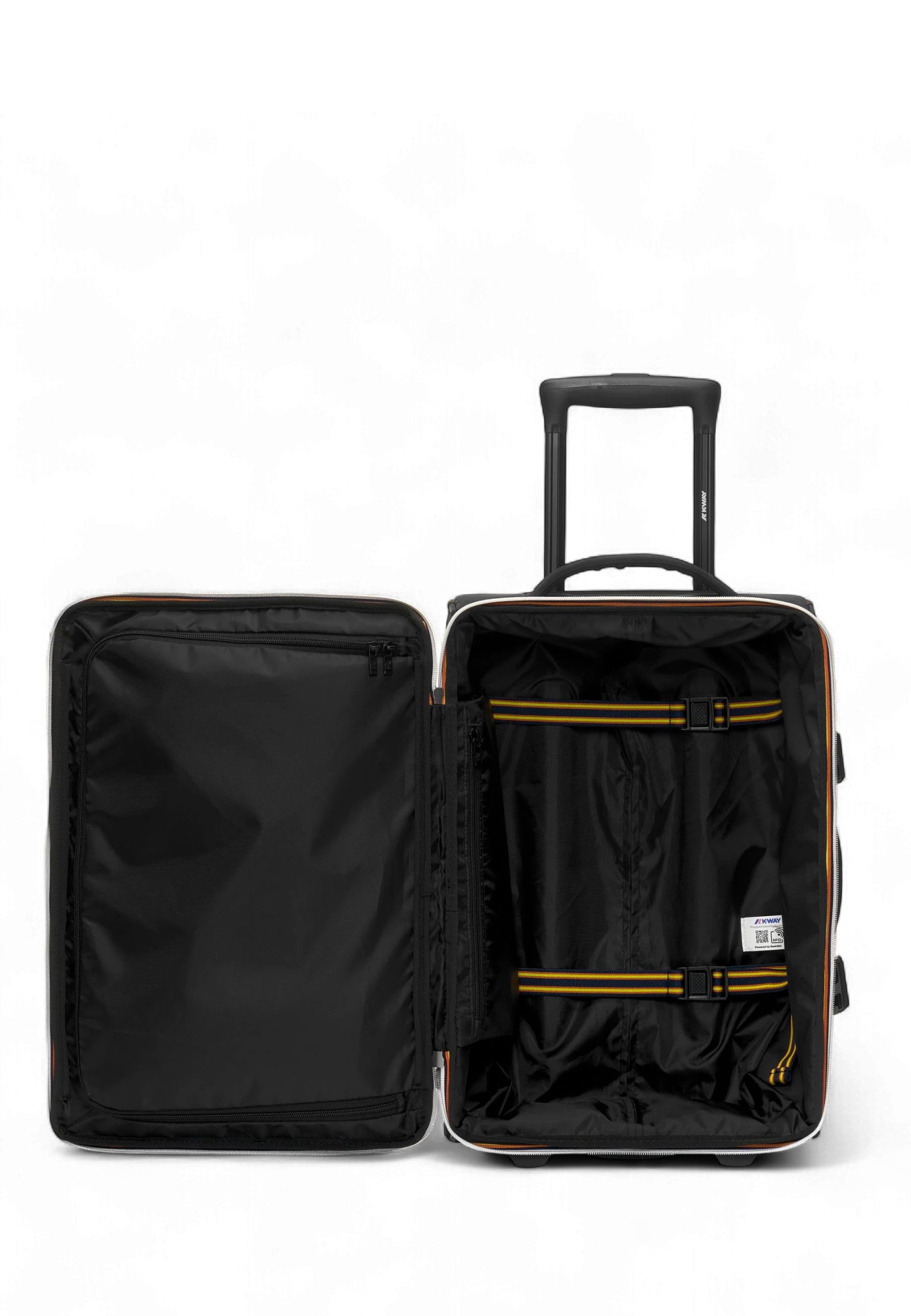 Realizzato in nylon ripstop impermeabile, idrorepellente e antivento, è rinforzato alla base per una maggiore durata nel tempo. Dotato di due ruote scorrevoli, manico rigido estraibile, maniglie laterale e superiore, garantisce massima maneggevolezza e versatilità. All'interno, scomparti multifunzionali permettono di organizzare al meglio ogni oggetto, mentre la tasca frontale con zip e la chiusura con zip K-Way a doppio cursore aggiungono praticità e sicurezza.