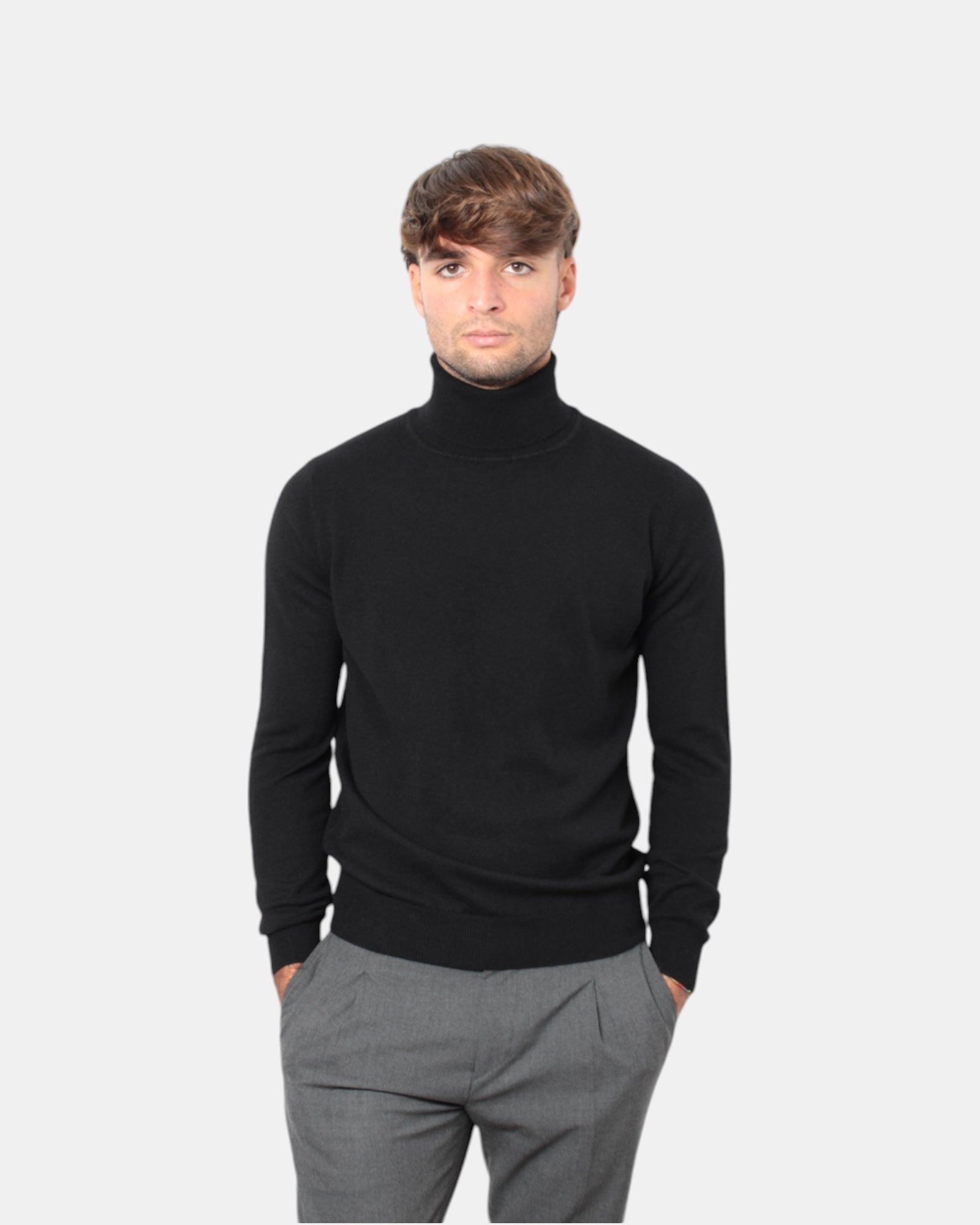 descrizione: la maglia a dolcevita kangra in puro cashmere, colore nero, unisce lusso e comfort. la sua vestibilità slim garantisce un look sofisticato e versatile, ideale per chi cerca un capo che valorizzi la figura senza rinunciare alla morbidezza e all’eleganza del cashmere.
