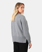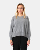 La maglia a girocollo di Kangra presenta vestibilità ampia con collo, polsi e fondo a coste e spacchi laterali, con fondo posteriore più lungo. La composizione è 100% cashmere. Si consiglia lavaggio amano e stiratura a bassa temperatura. La modella è alta 1,67 m e indossa una 40.