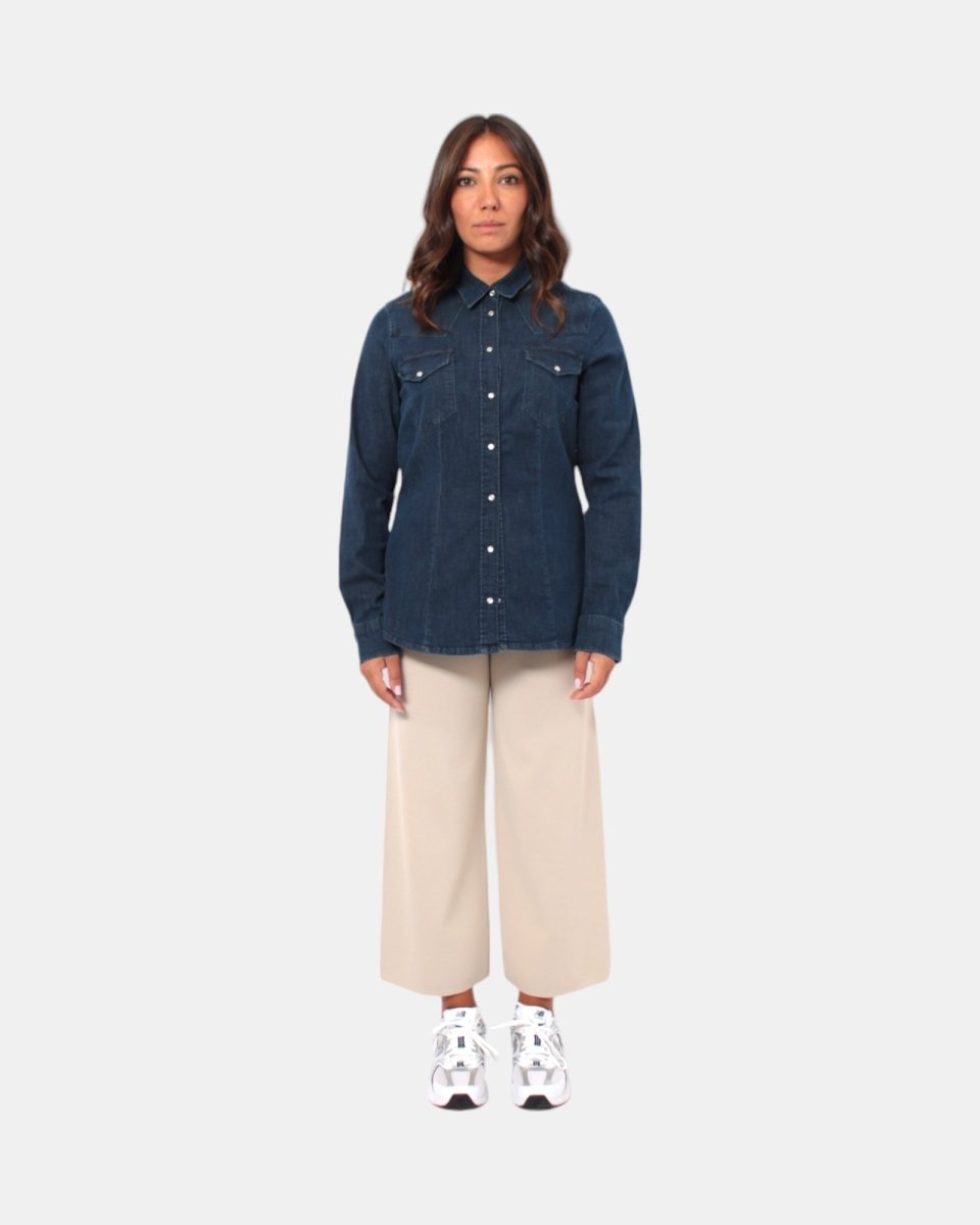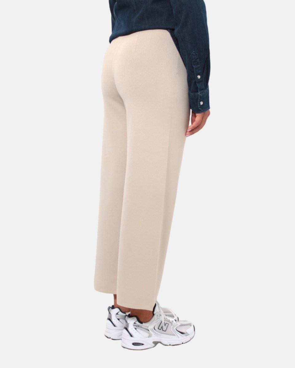 Pantalone a palazzo con elastico in vita, progettato per un look elegante e rilassato.