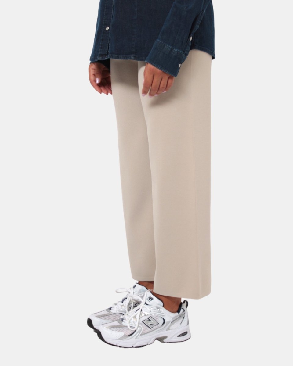Il pantalone in maglia donna beige è la scelta ideale per chi cerca eleganza e comfort in un unico capo. Realizzato con una miscela di 65% viscosa e 35% poliammide, questo pantalone offre una sensazione di morbidezza al tatto e una leggera elasticità che garantisce una vestibilità perfetta. Il modello