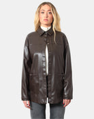 La giacca di Max Mara in ecopelle presenta modello camicia con collo e chiusura con bottoni pressione a scomparsa, due tasche a toppa con passante e maniche con chiusura con bottoni, dalla vestibilità regolare e dalla composizione in 100% poliestere. SI consiglia lavaggio a mano o a secco. La modella è alta 1,70 m e indossa una S