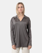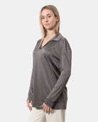 La casacca di Max Mara presenta scollatura frontale a V, colletto, e vestibilità leggermente over, dalla mano morbida dovuta alla sua composizione in 79% triacetato e 21% poliestere. Si consiglia lavaggio a mano. La modella è alta 1,69 m e indossa una S